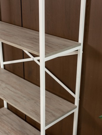 Настенный стеллаж выполнен из ЛДСП. Это прочный материал, который устойчив к перепадам температур и влажности воздуха.