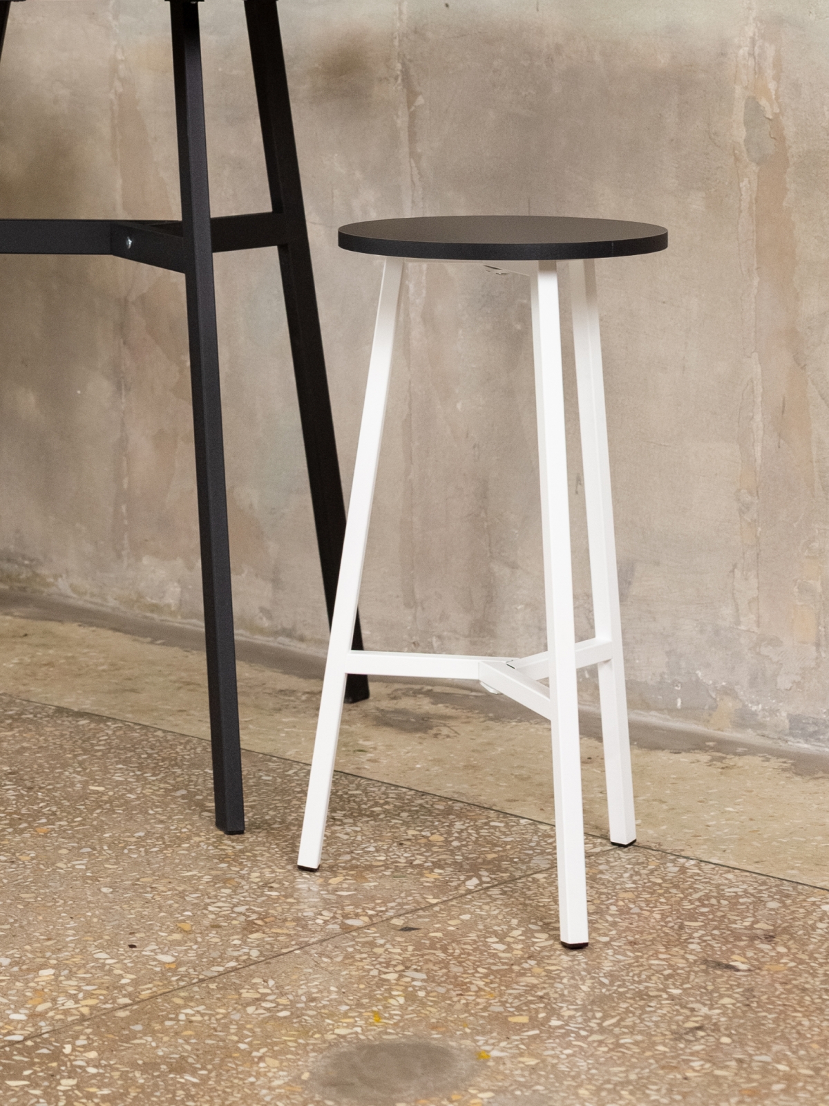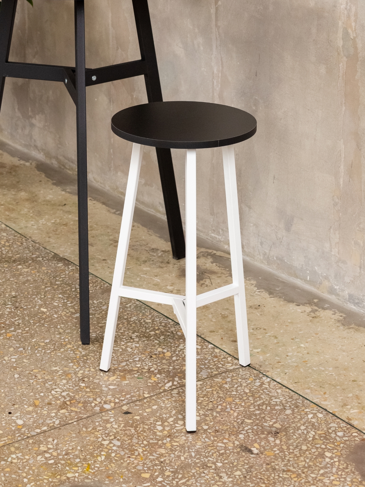 Сиденье выполнено из ламинированной древесно-стружечной плиты. Оно имеет круглую форму, которая придает модели визуальную мягкость и контрастирует с прямолинейностью каркаса. Универсальные цвета ЛДСП добавляют уюта, создавая дополнительный акцент на фоне белого металла. Такой баланс делает полубарный табурет для кухни универсальным решением для интерьеров, в которых хочется сохранить ощущение света и простора.