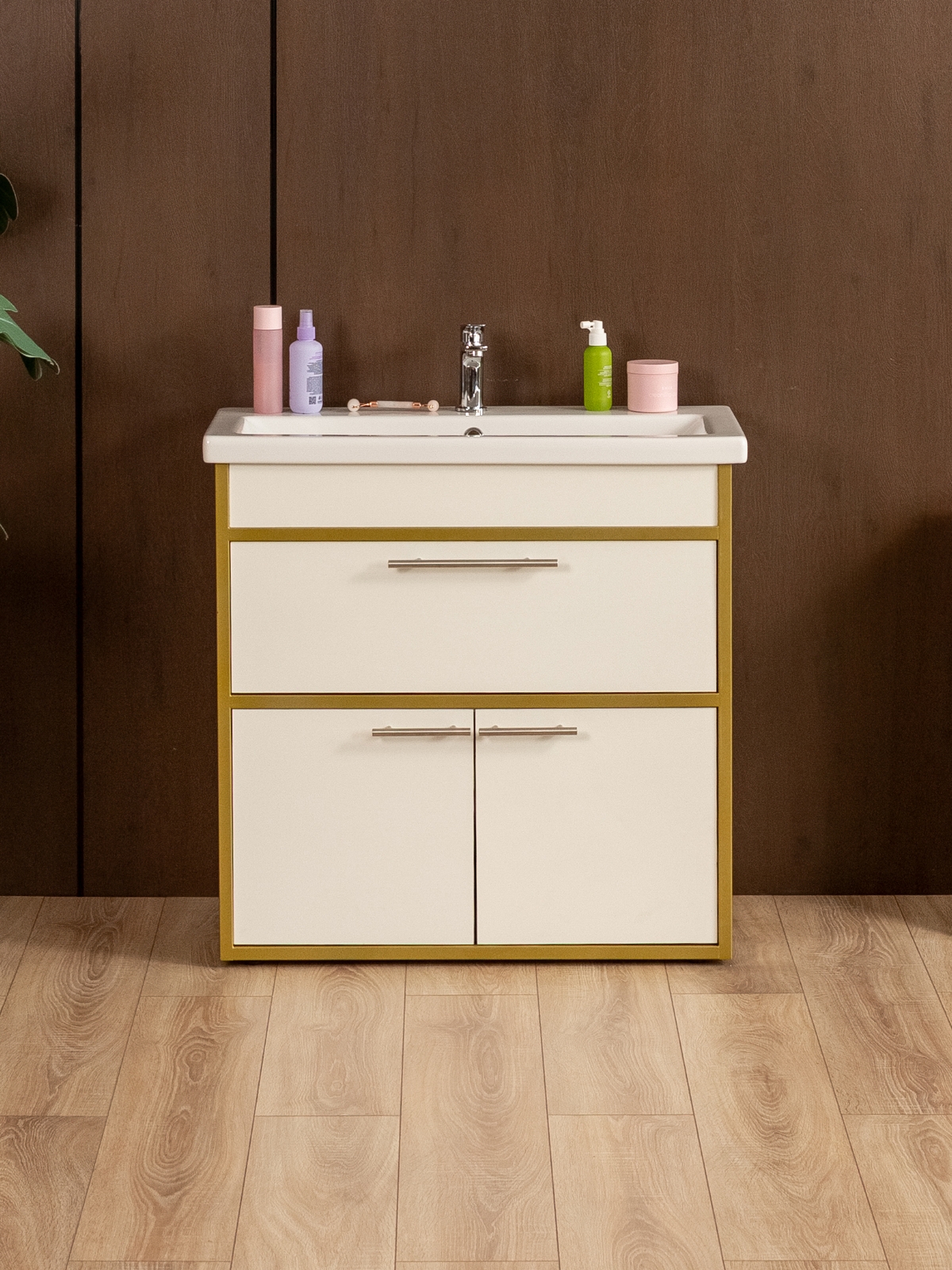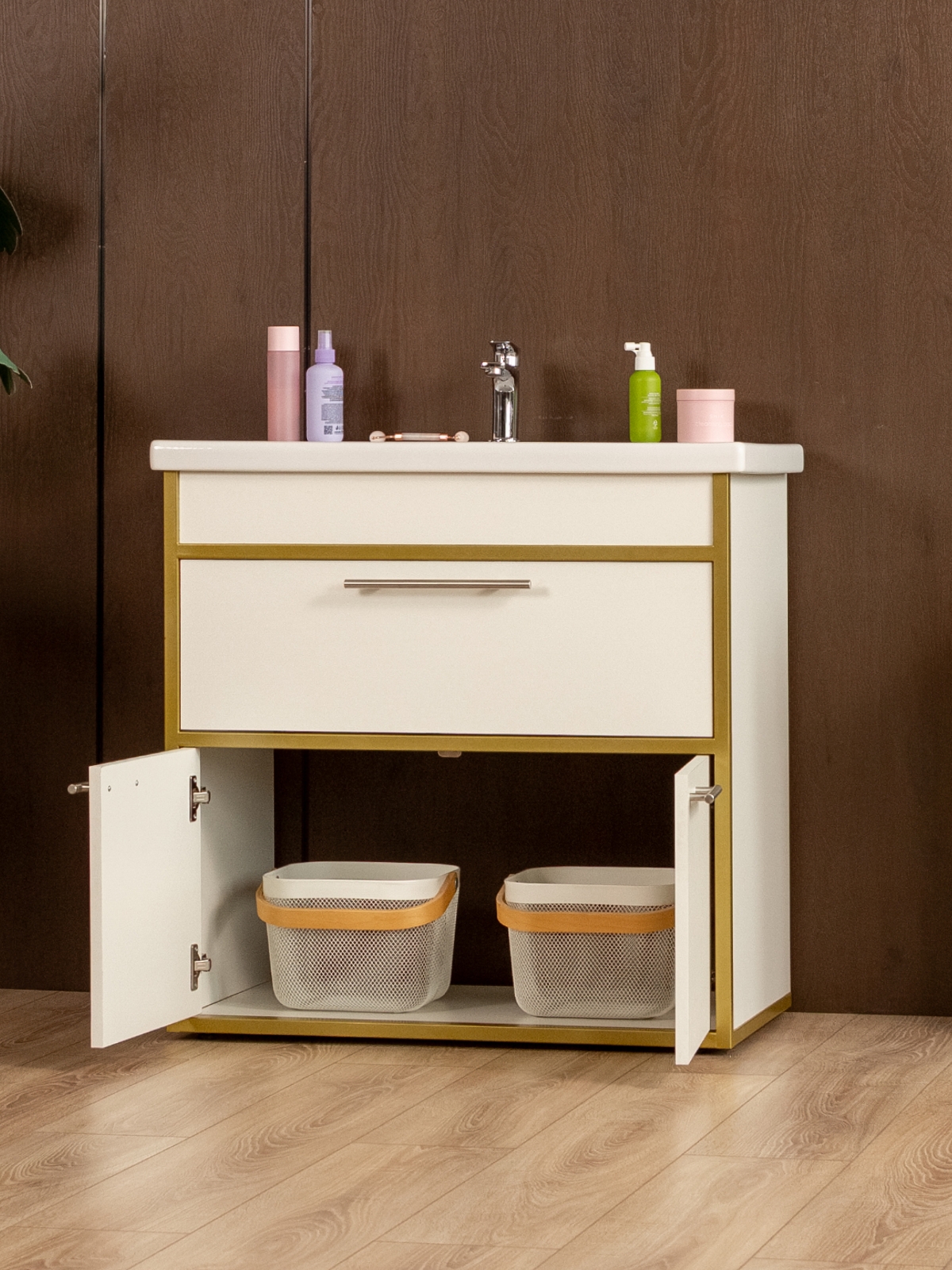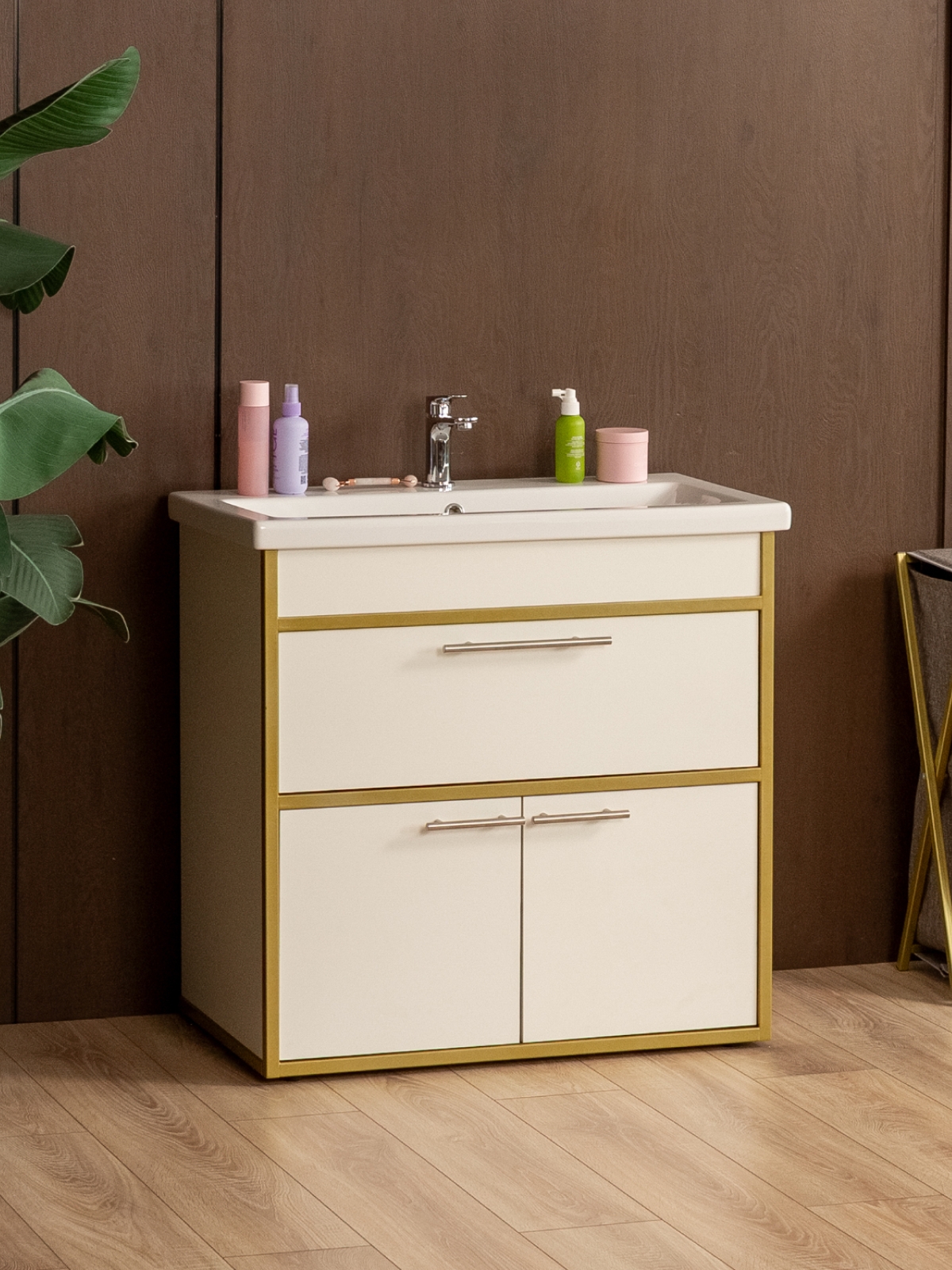 Тумба под раковину для ванной лофт Шимри золотой/белый
