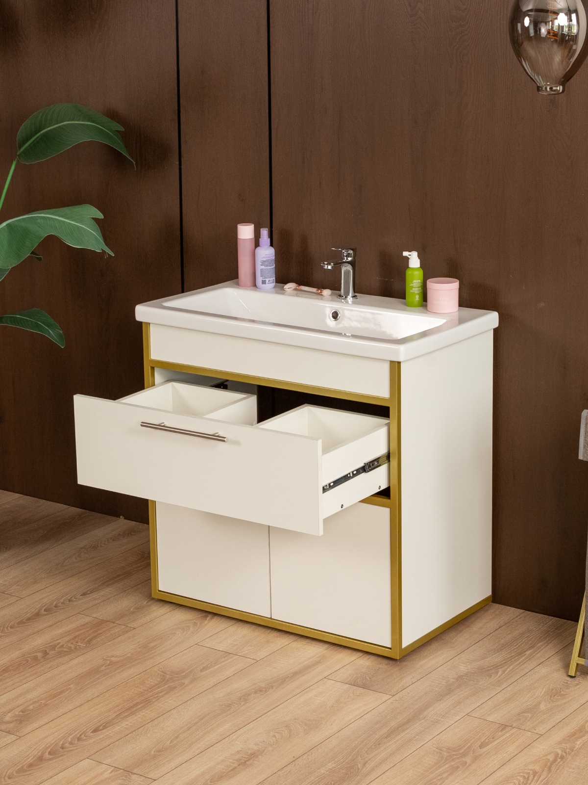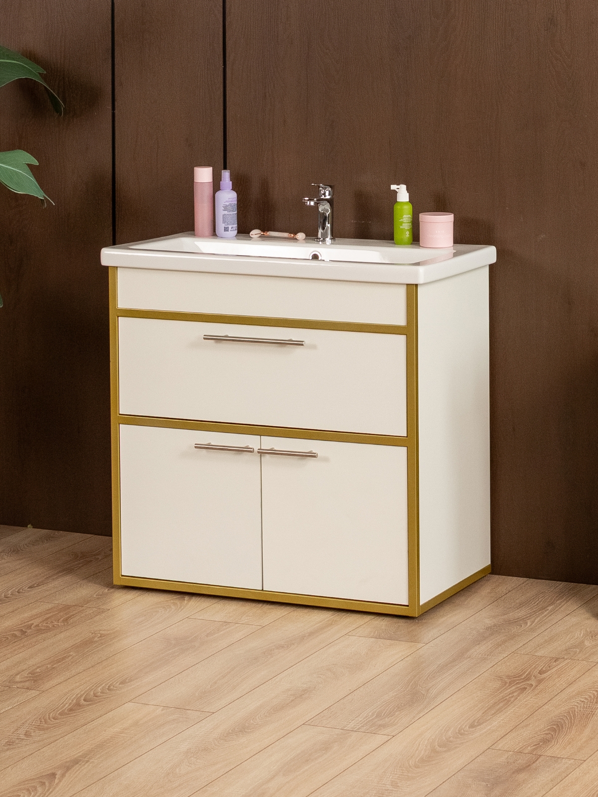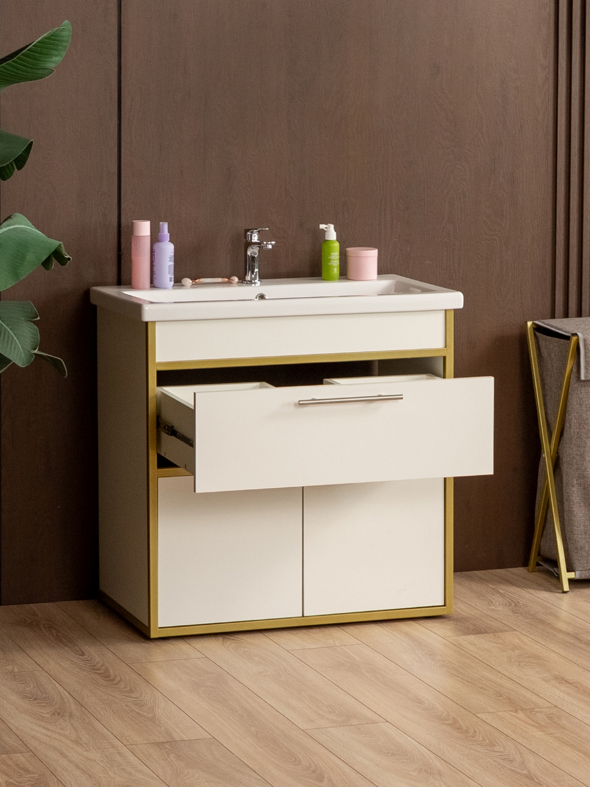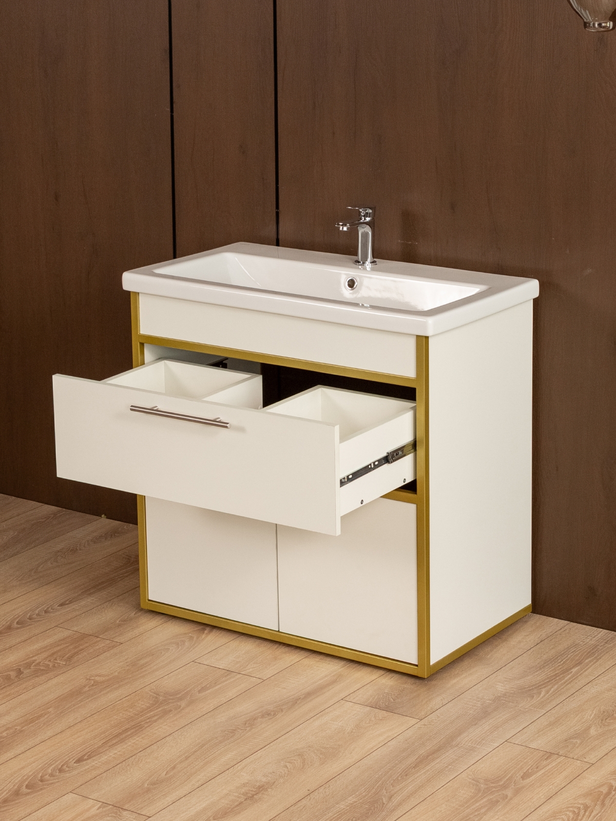 Тумба под раковину для ванной лофт Шимри золотой/белый
