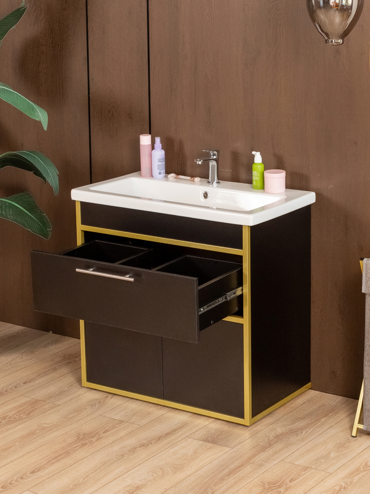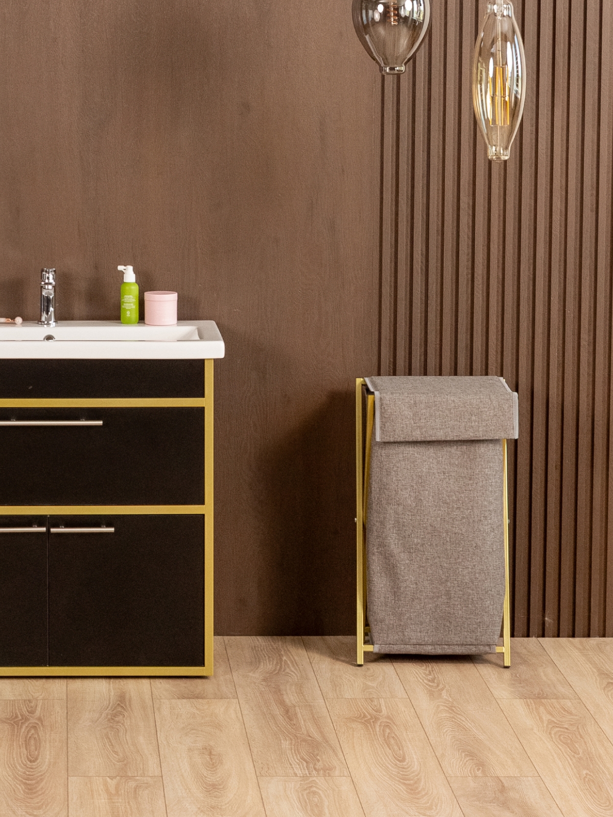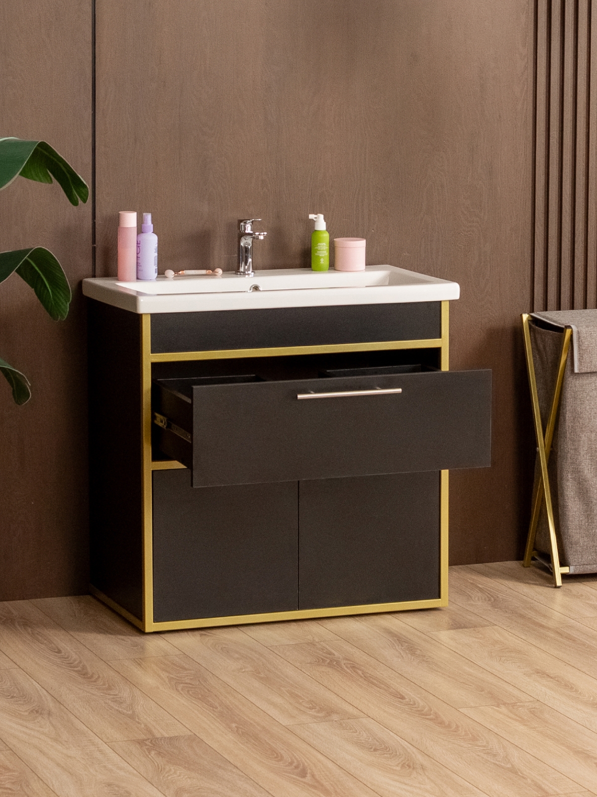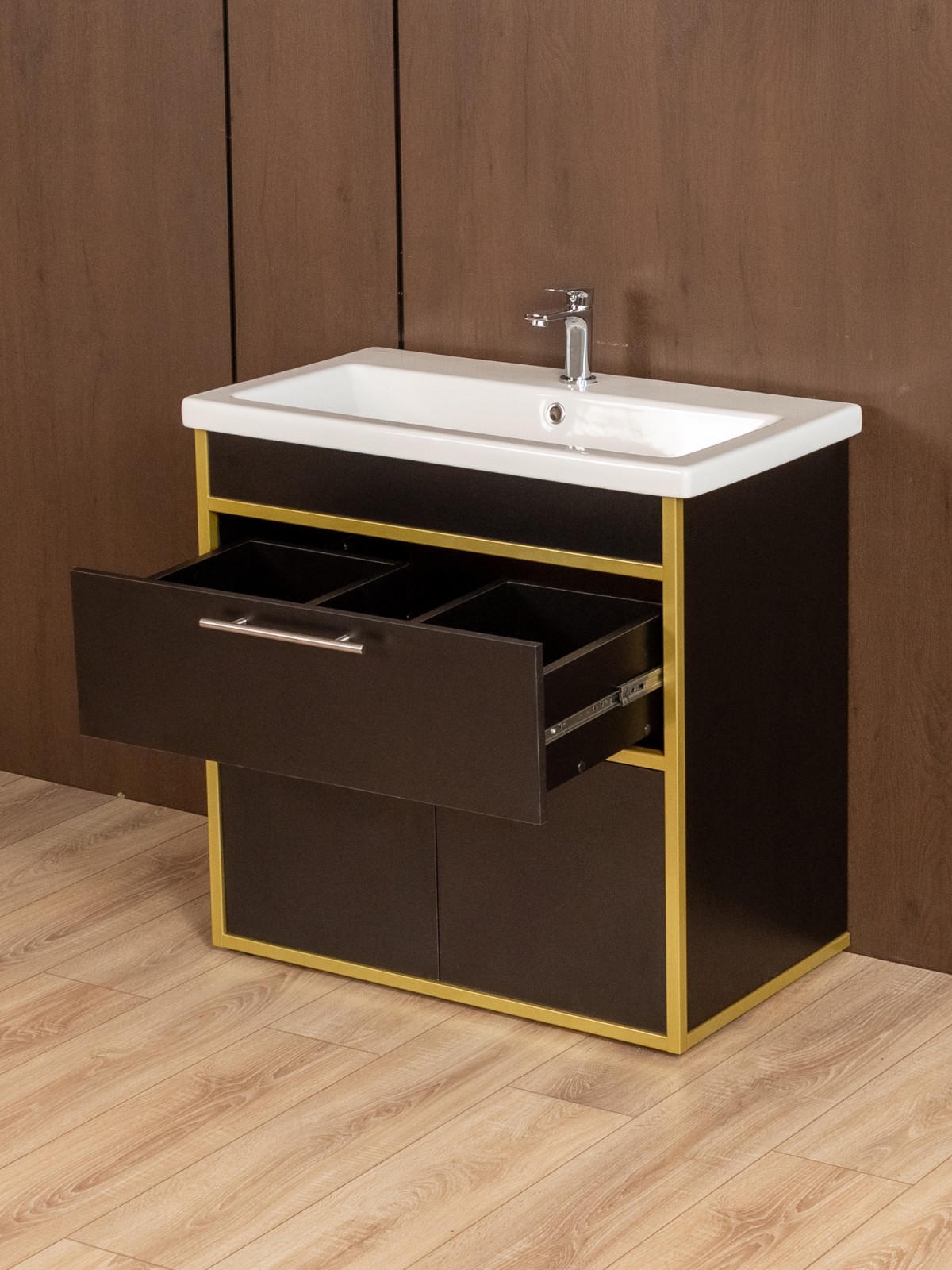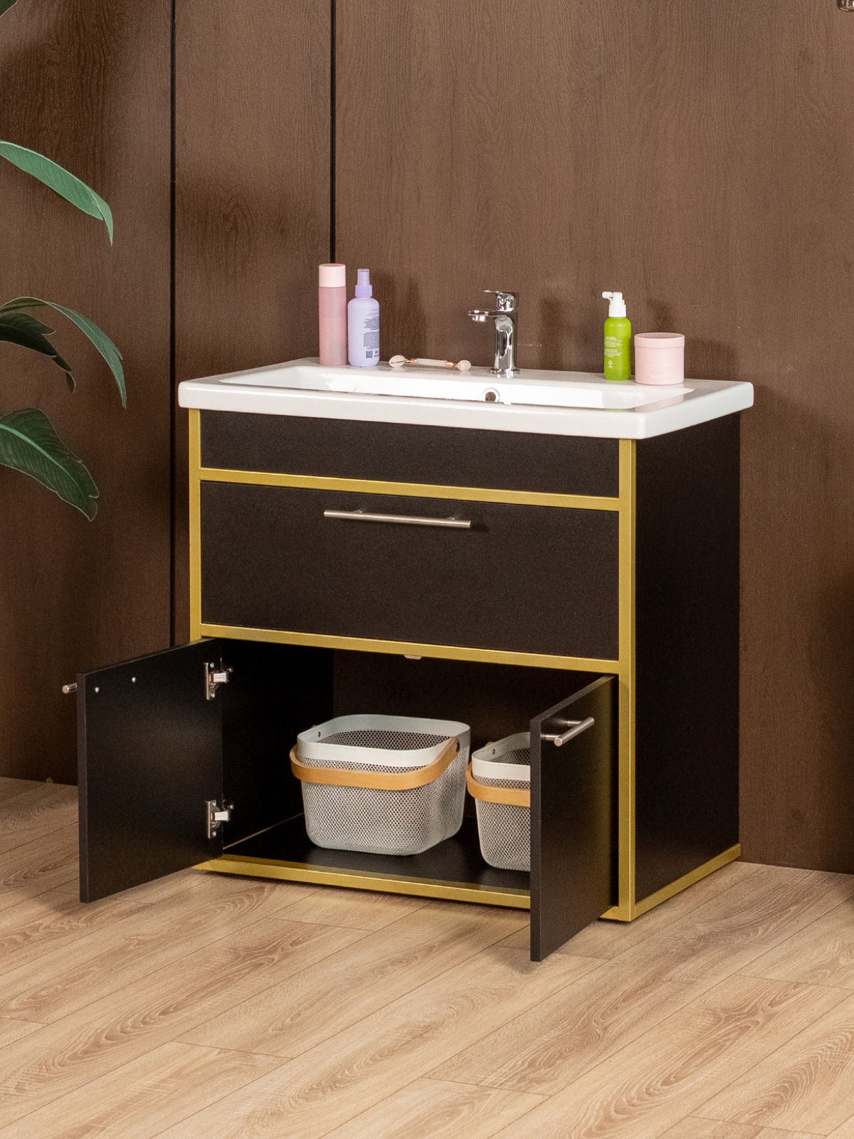 Тумба под раковину для ванной лофт Шимри золотой/черный