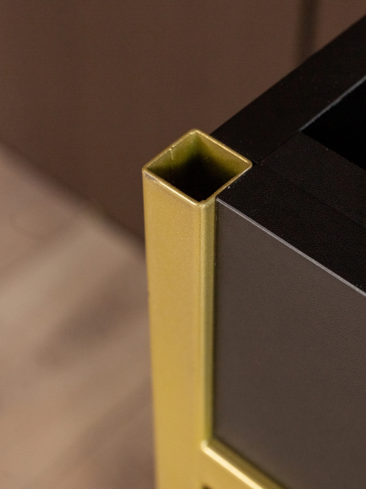 Золотой акцент на каркасе напольной тумбочки — настоящая находка для тех, кто стремится создать роскошный и стильный интерьер. Он добавляет пространству тепло и шик. Такая тумбочка станет не только функциональным, но и эстетически привлекательным элементом интерьера.