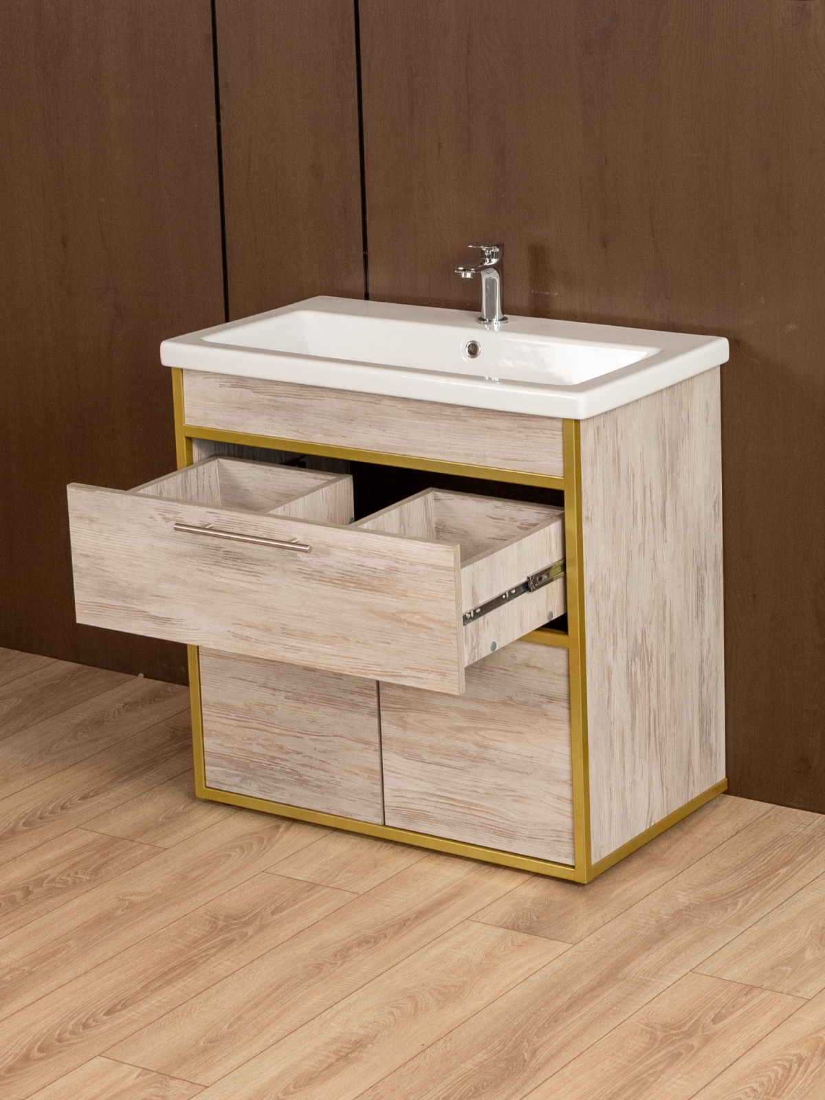Тумба под раковину для ванной лофт Шимри золотой/кашемир