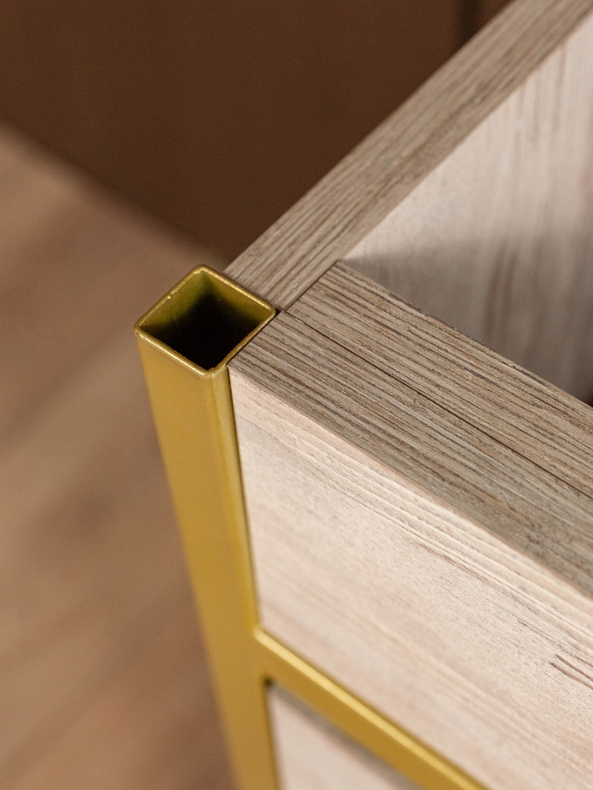 Золотой акцент на каркасе напольной тумбочки — настоящая находка для тех, кто стремится создать роскошный и стильный интерьер. Он добавляет пространству тепло и шик. Такая тумбочка станет не только функциональным, но и эстетически привлекательным элементом интерьера.
