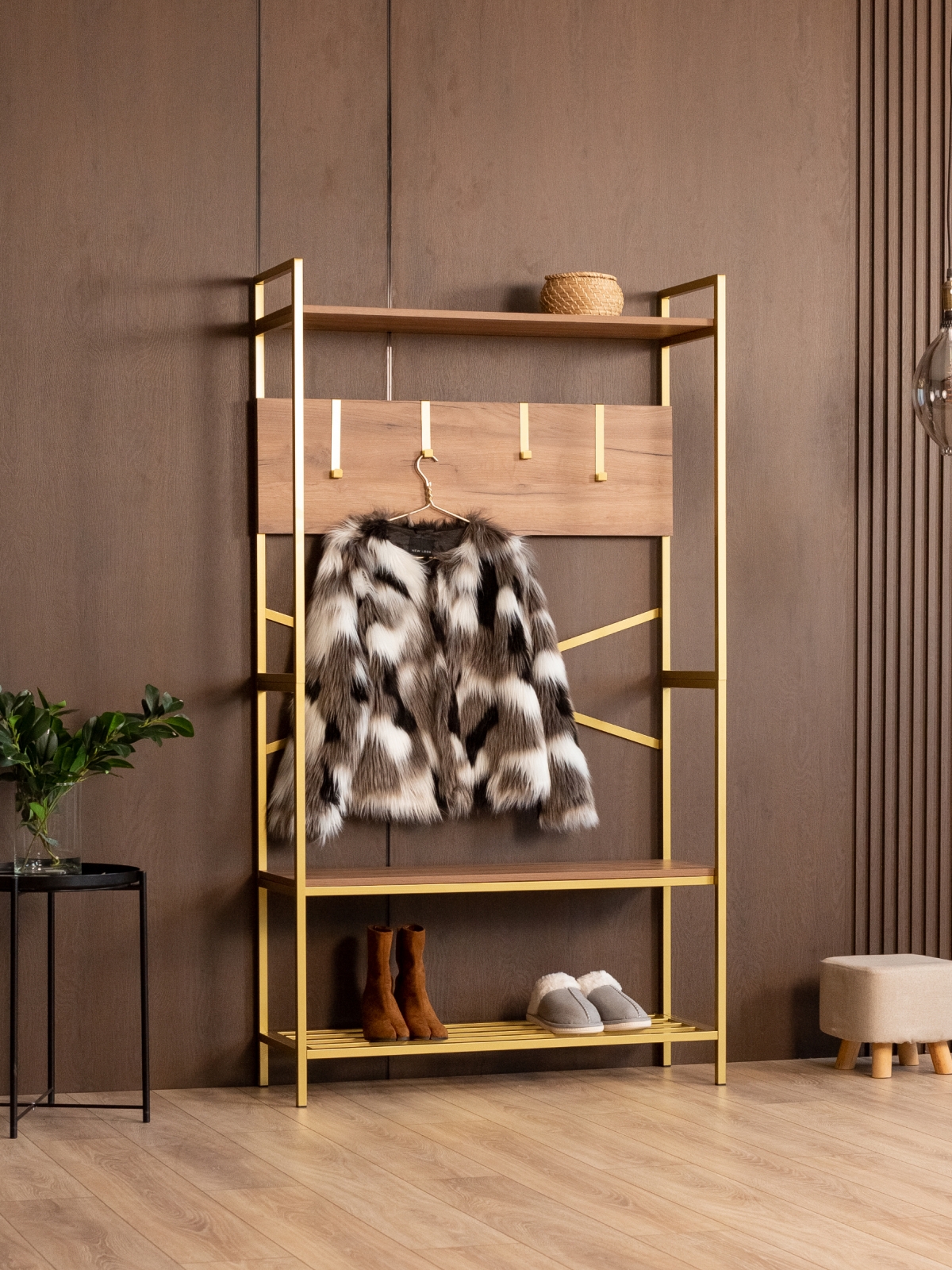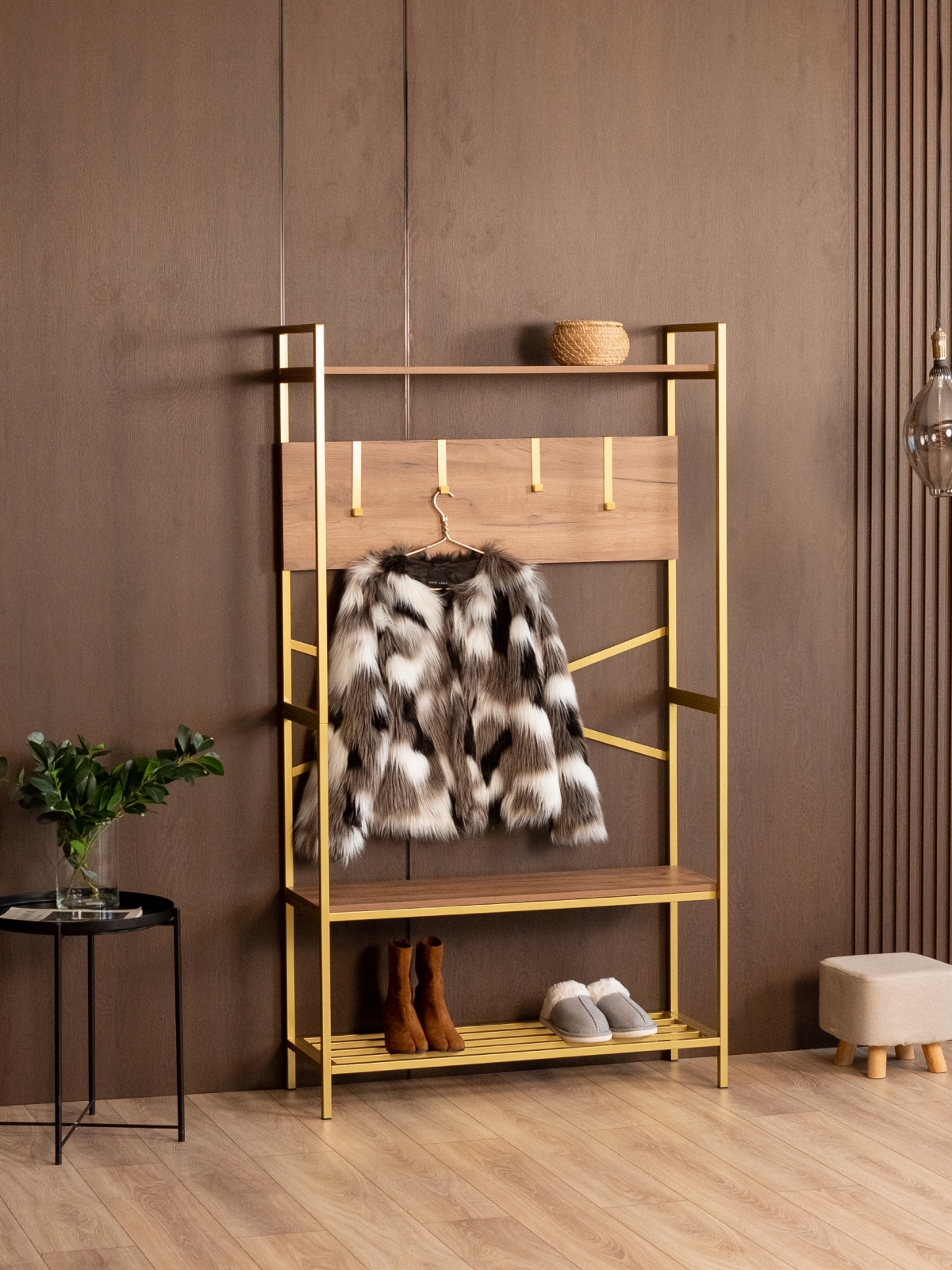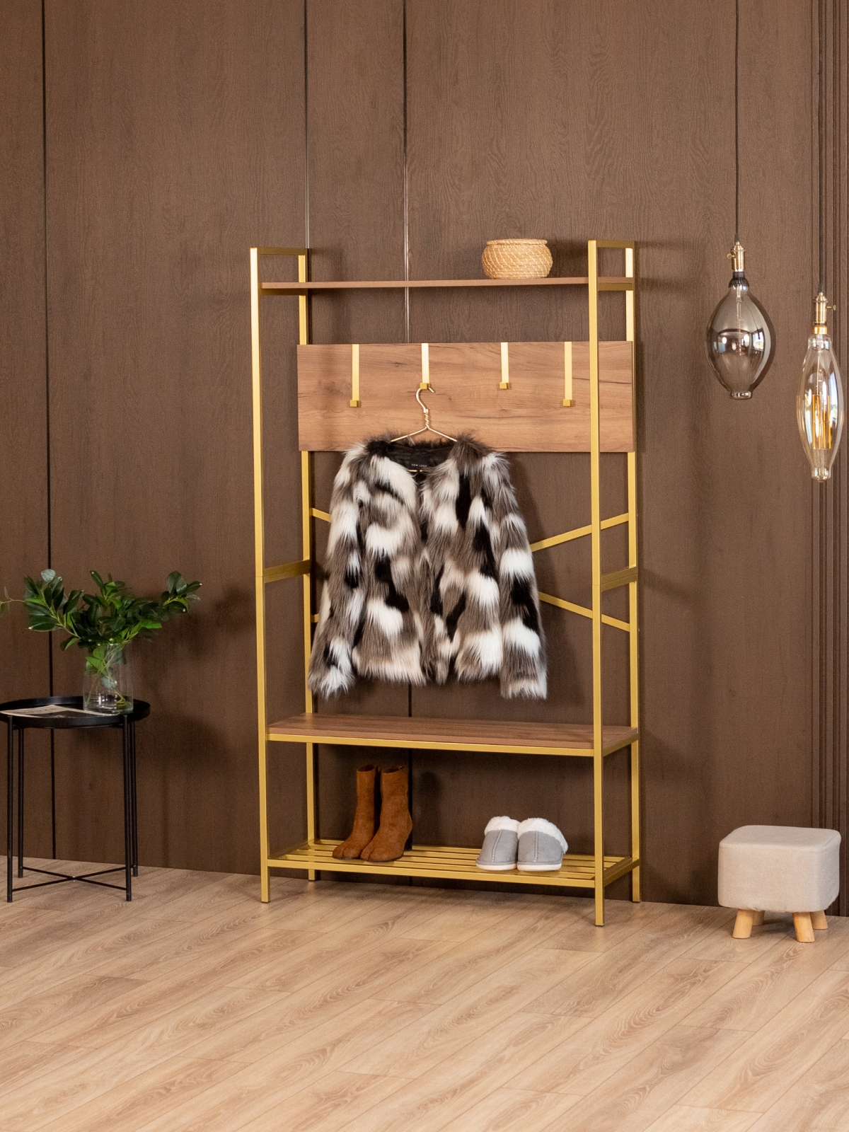 Вешалка напольная в прихожую лофт Татта золотой/амаретто