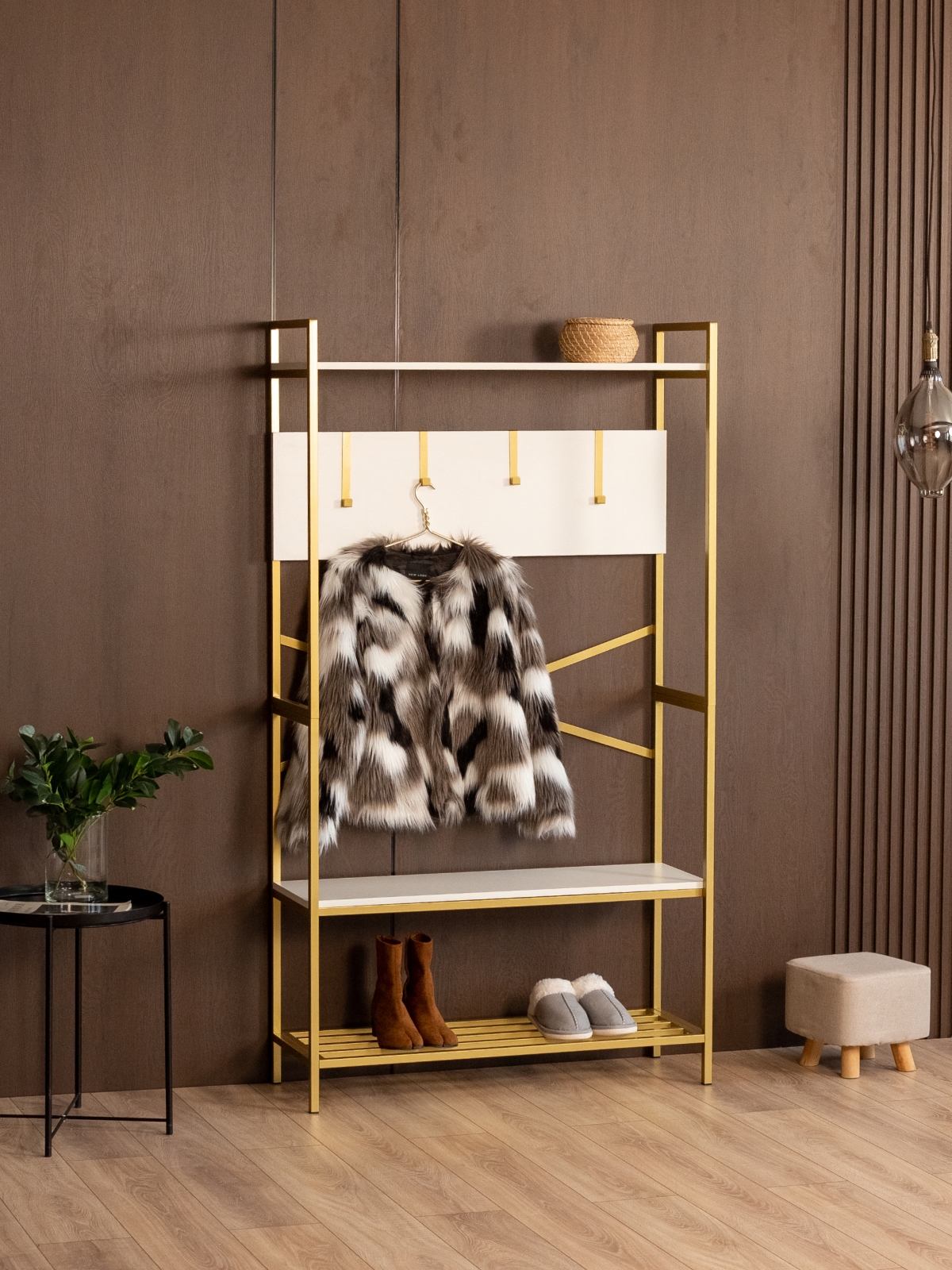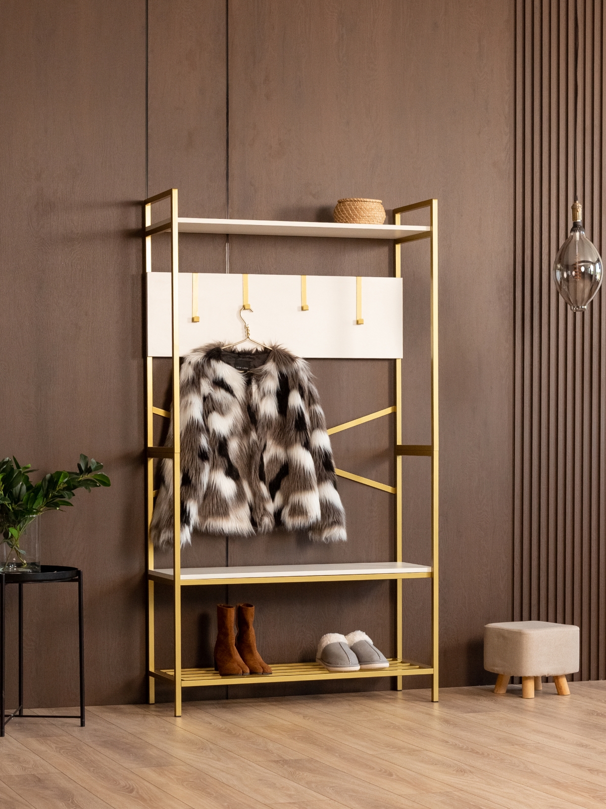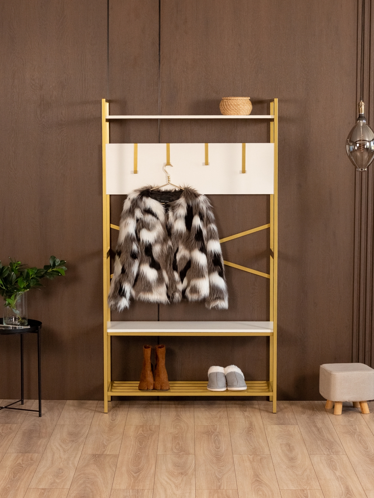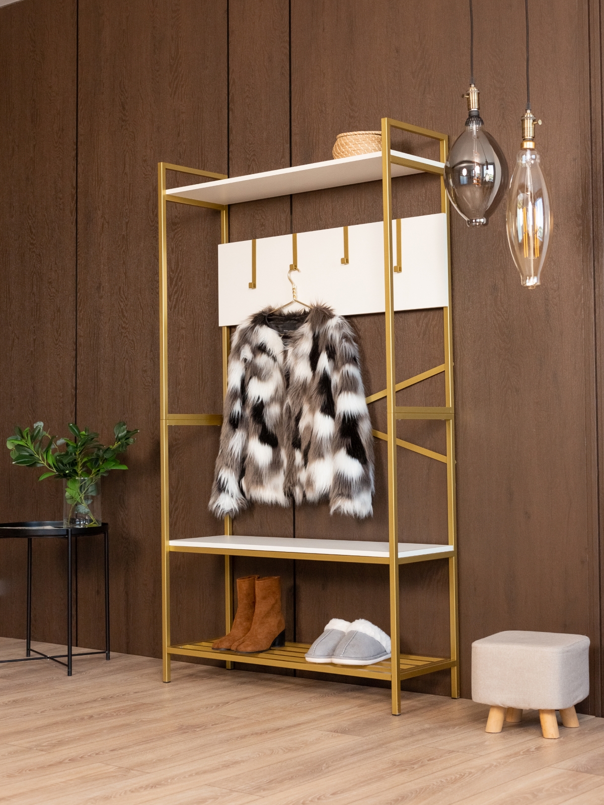 Вешалка напольная в прихожую лофт Татта золотой/белый