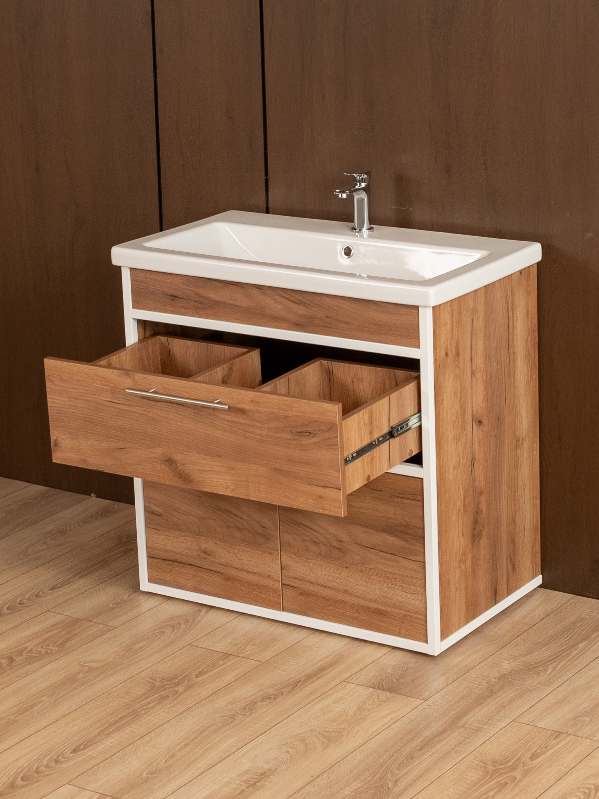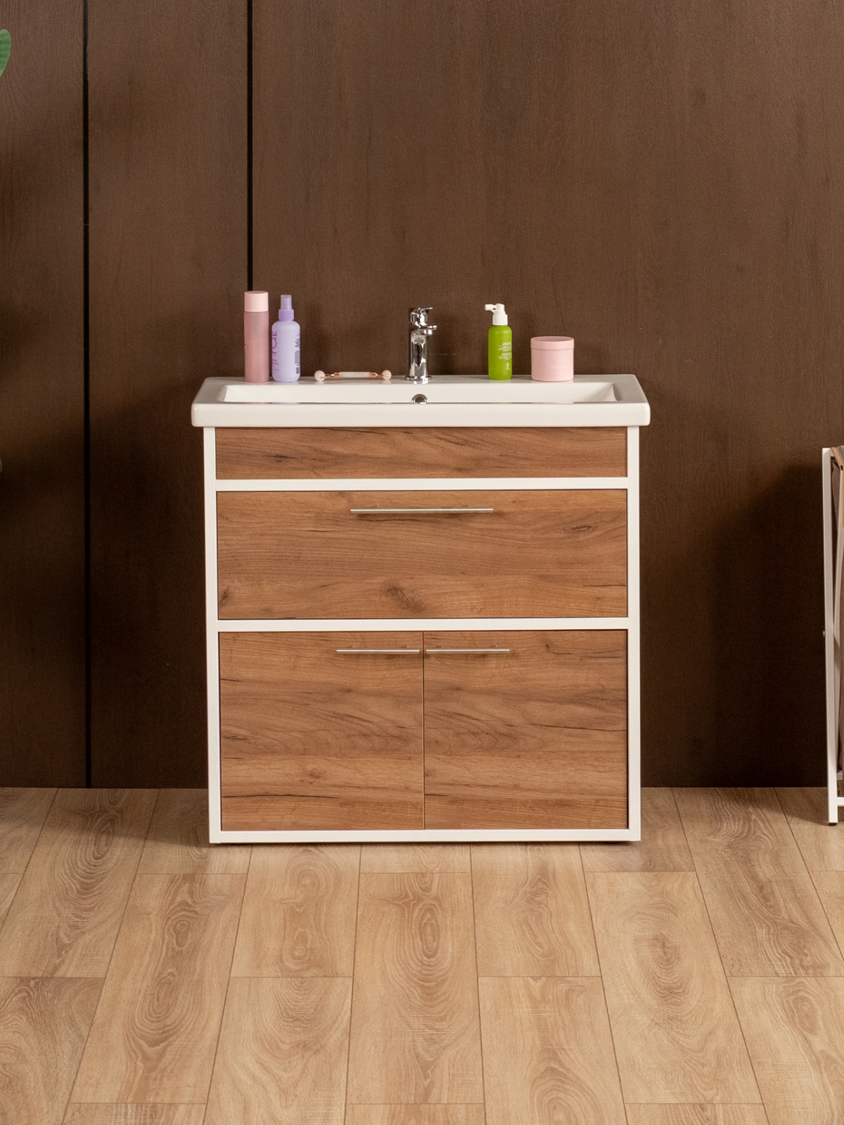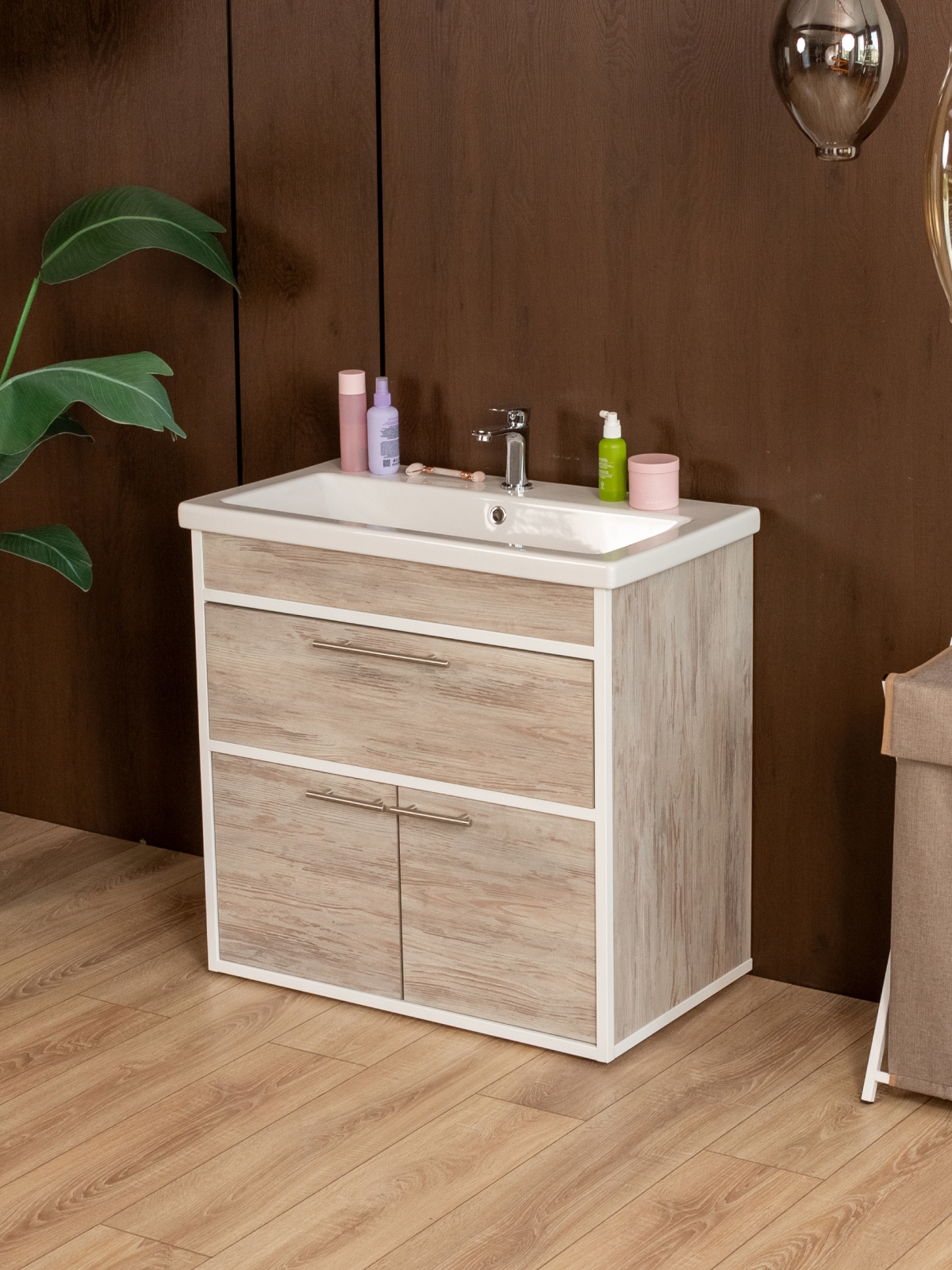 Тумба под раковину для ванной лофт Шимри белый/амаретто