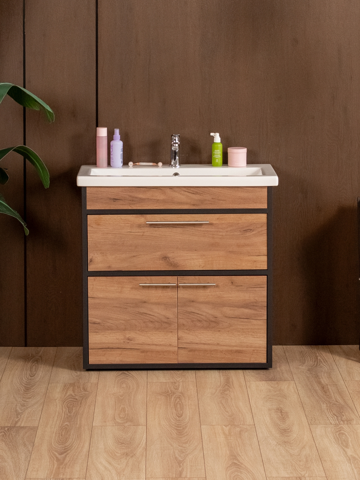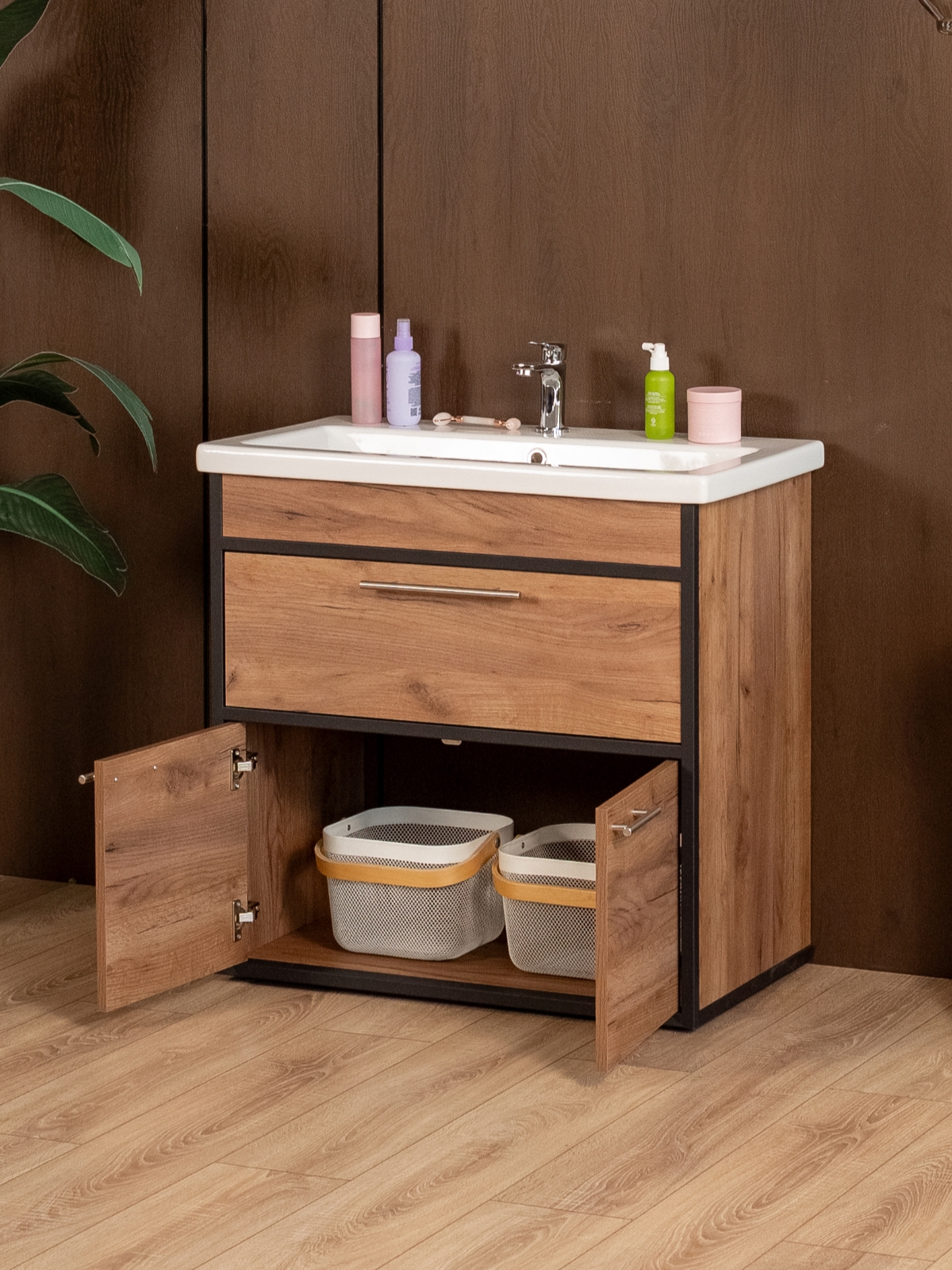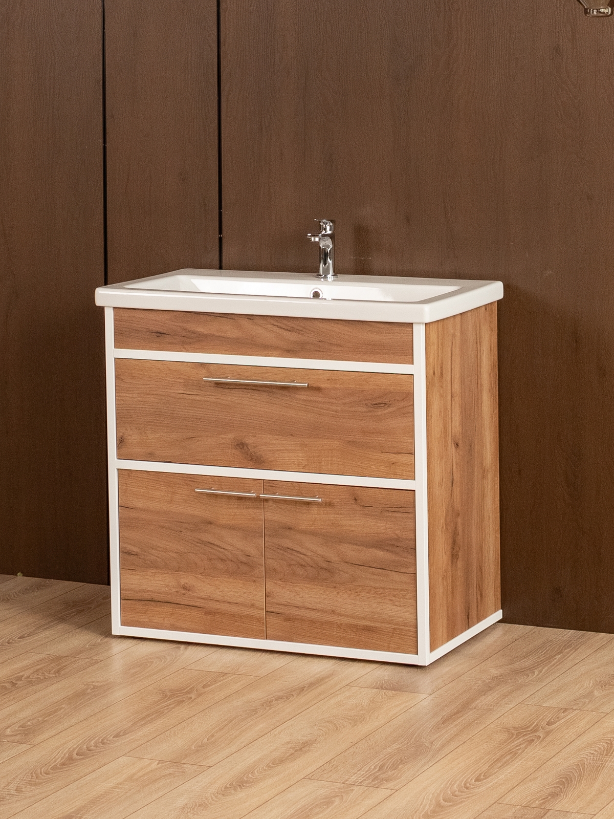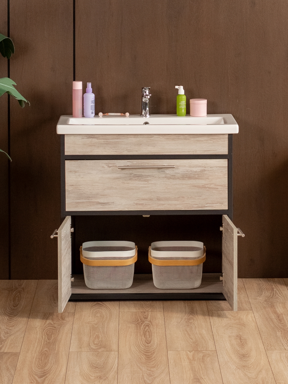 Тумба под раковину для ванной лофт Шимри белый/амаретто