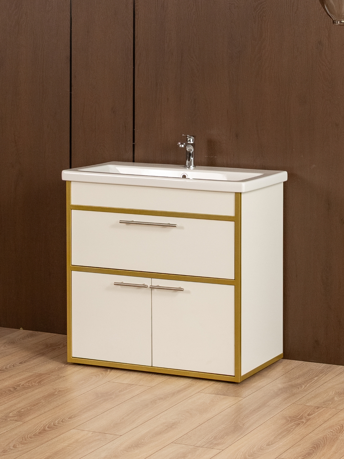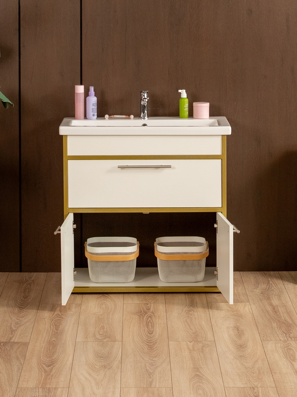 Тумба под раковину для ванной лофт Шимри золотой/белый