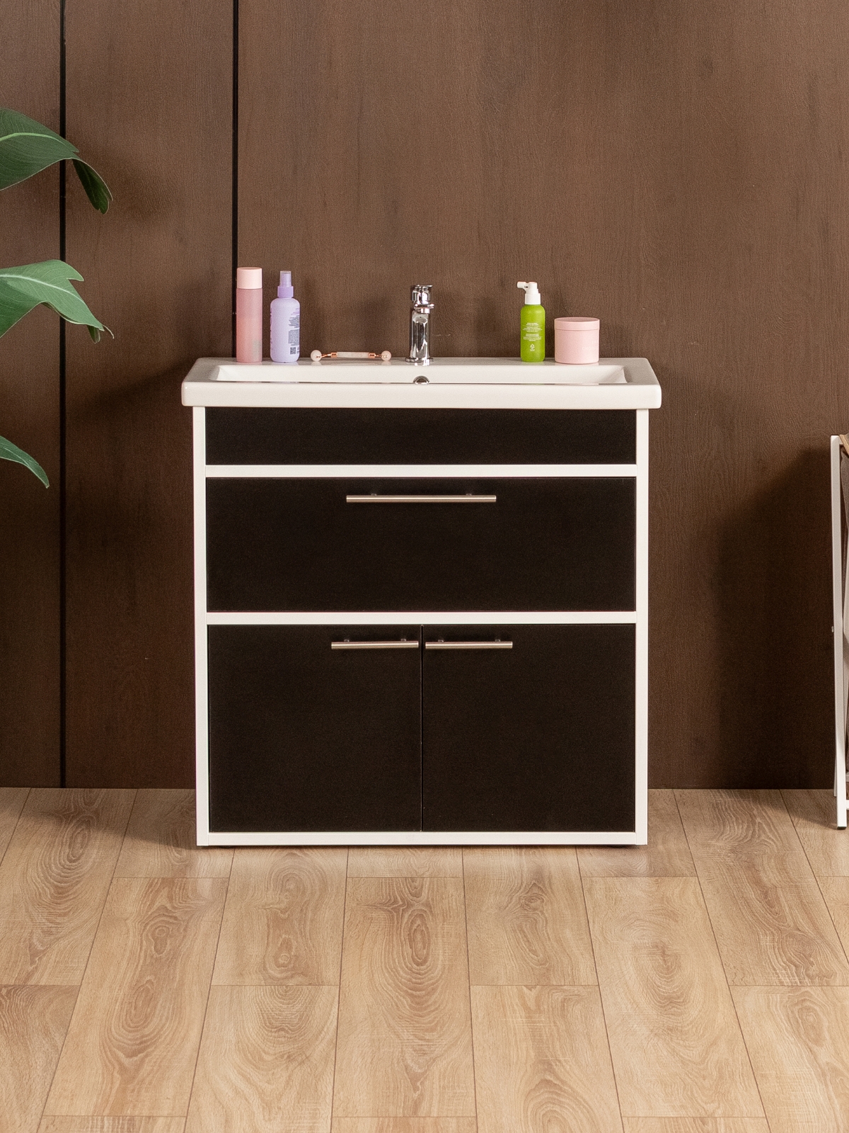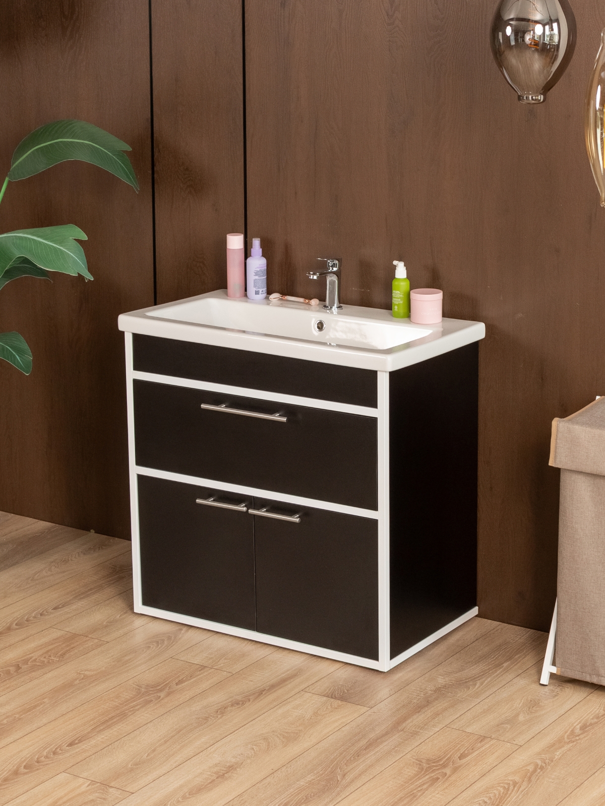 Тумба под раковину для ванной лофт Шимри черный/белый