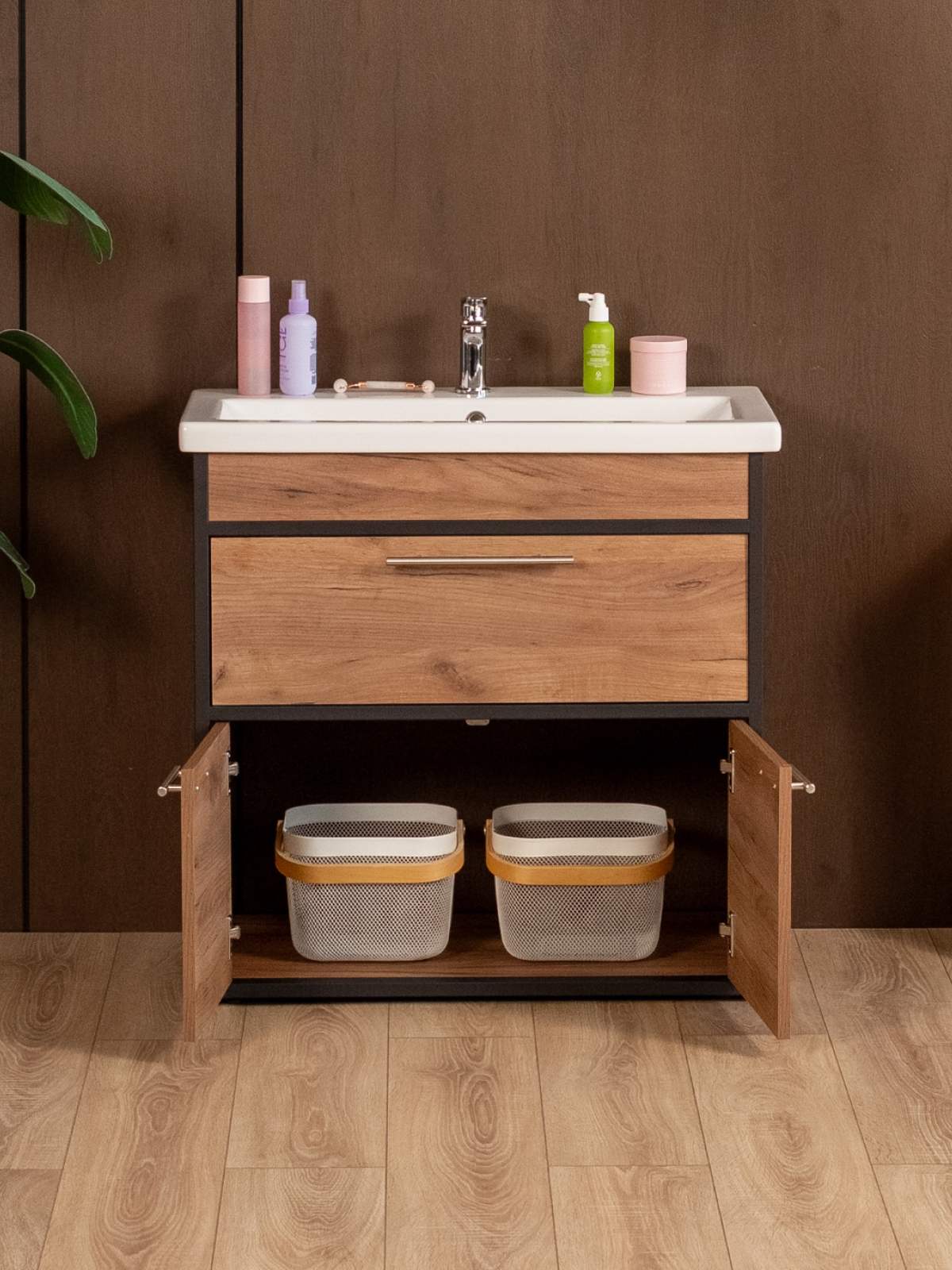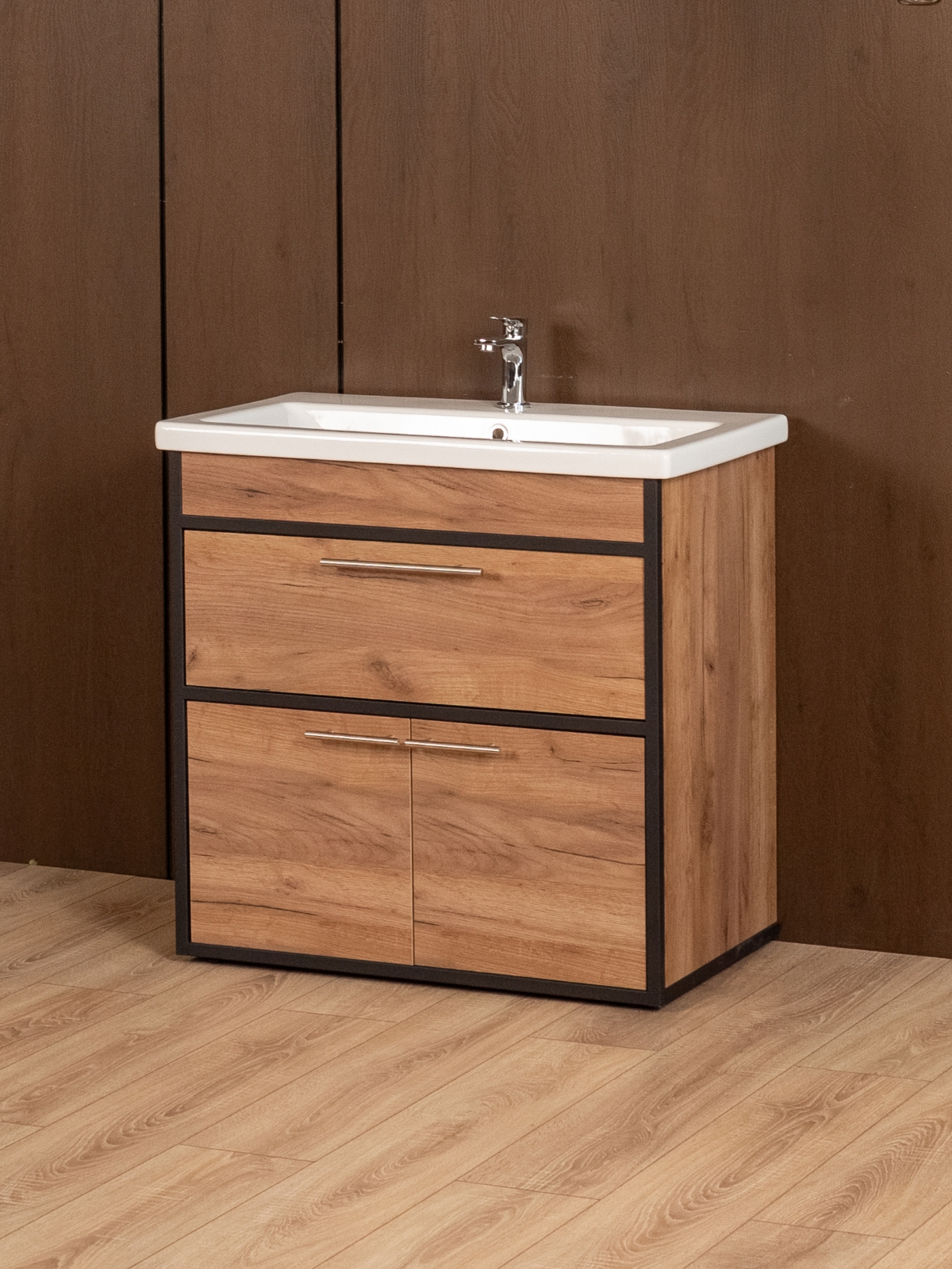 Тумба под раковину для ванной лофт Шимри черный/амаретто