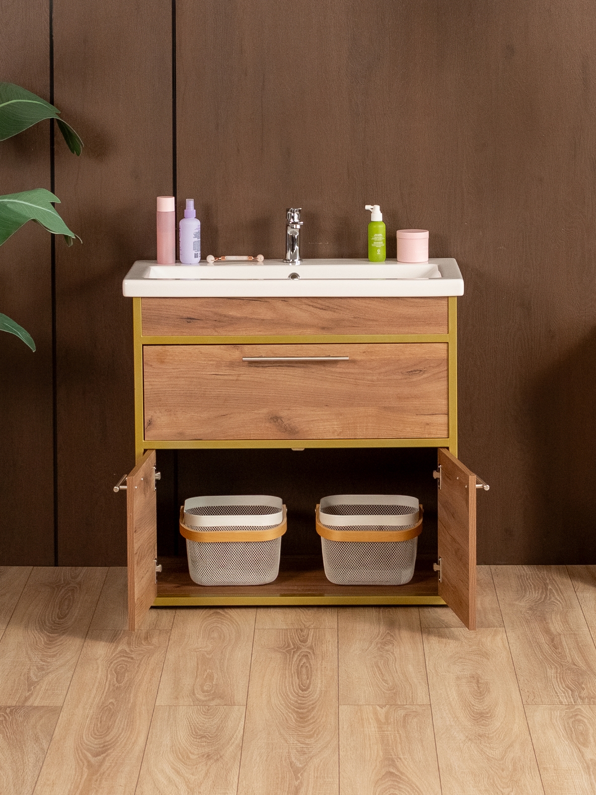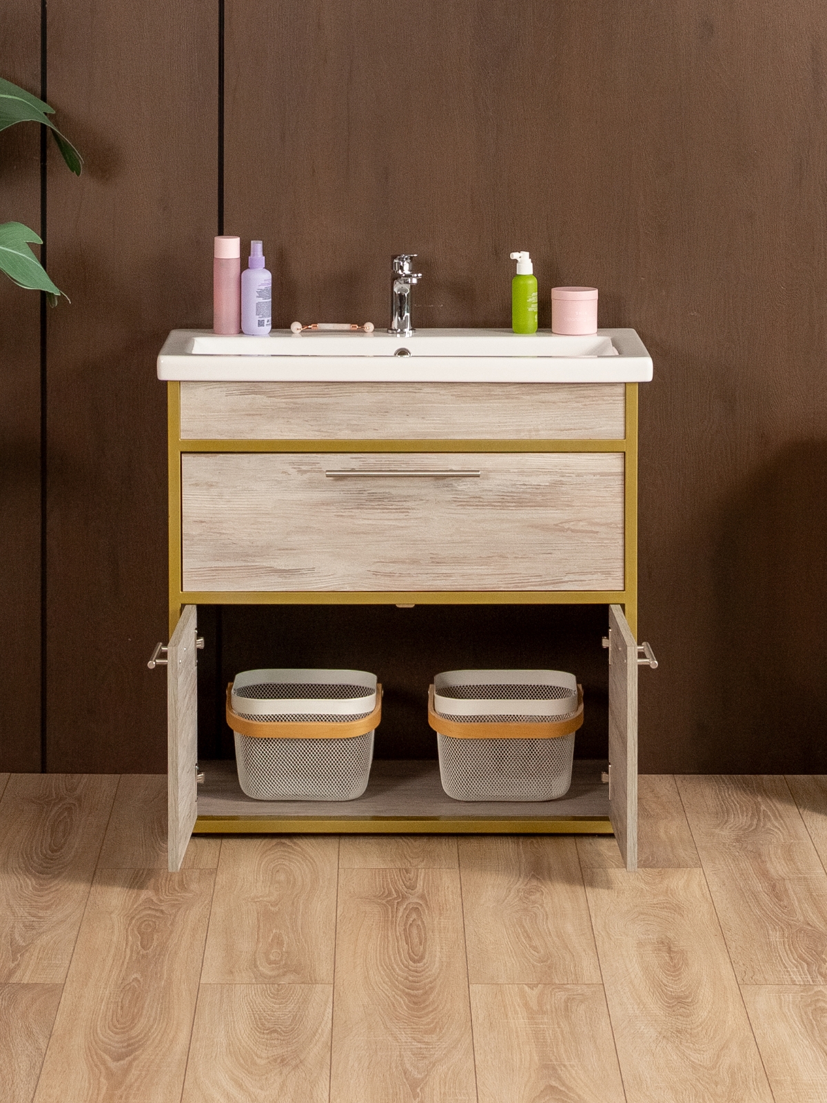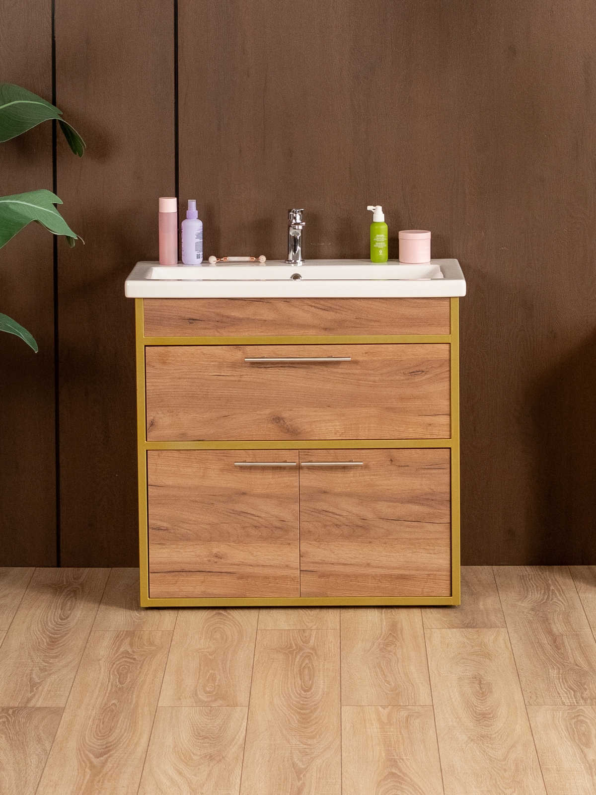 Тумба под раковину для ванной лофт Шимри золотой/амаретто