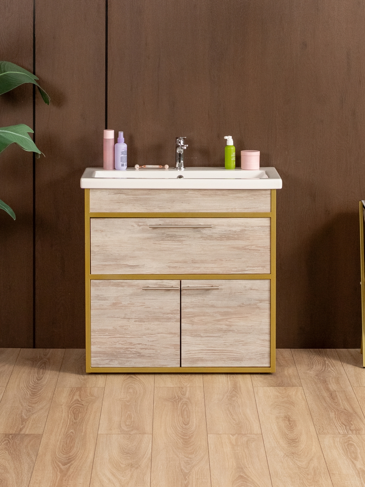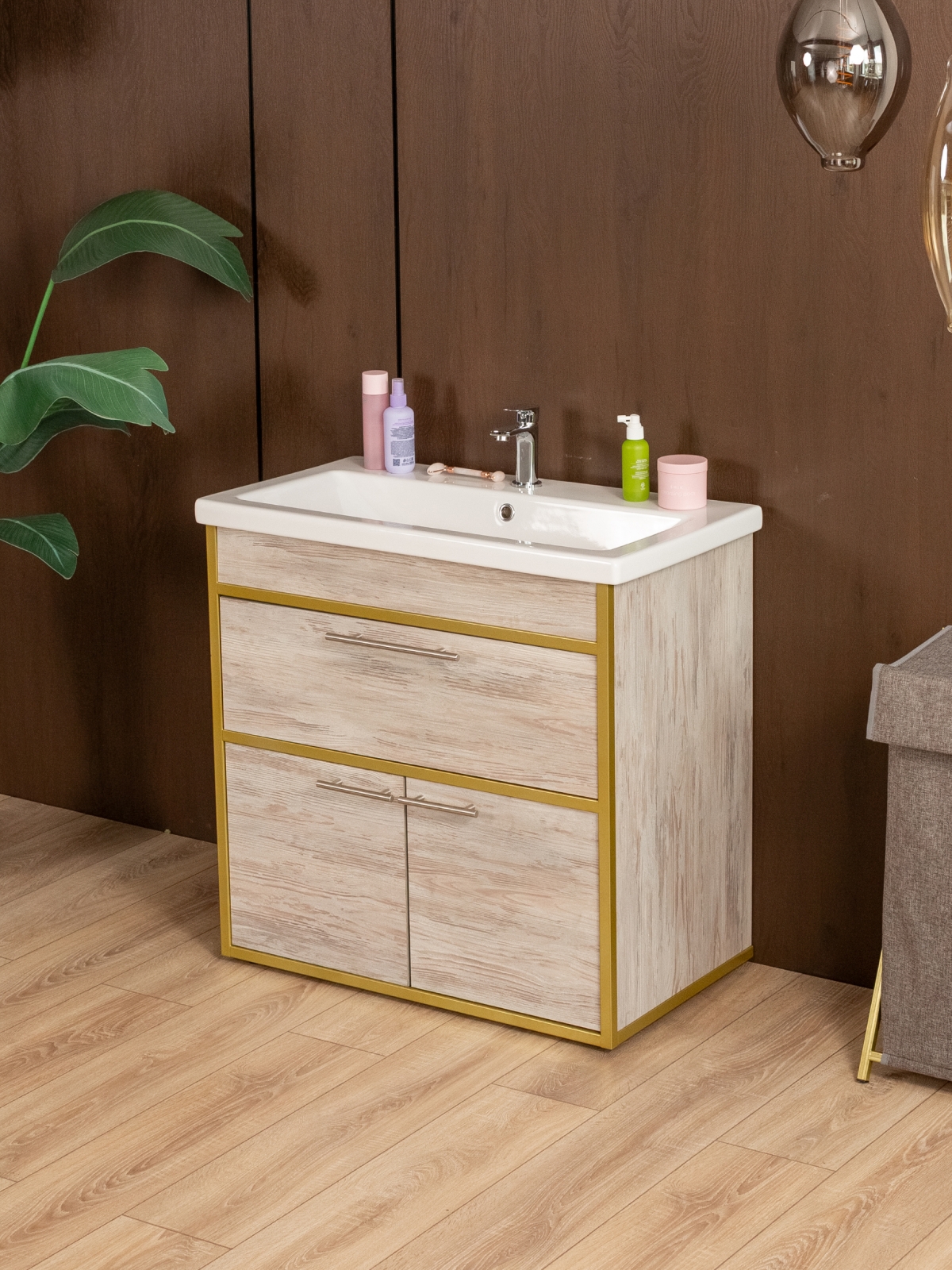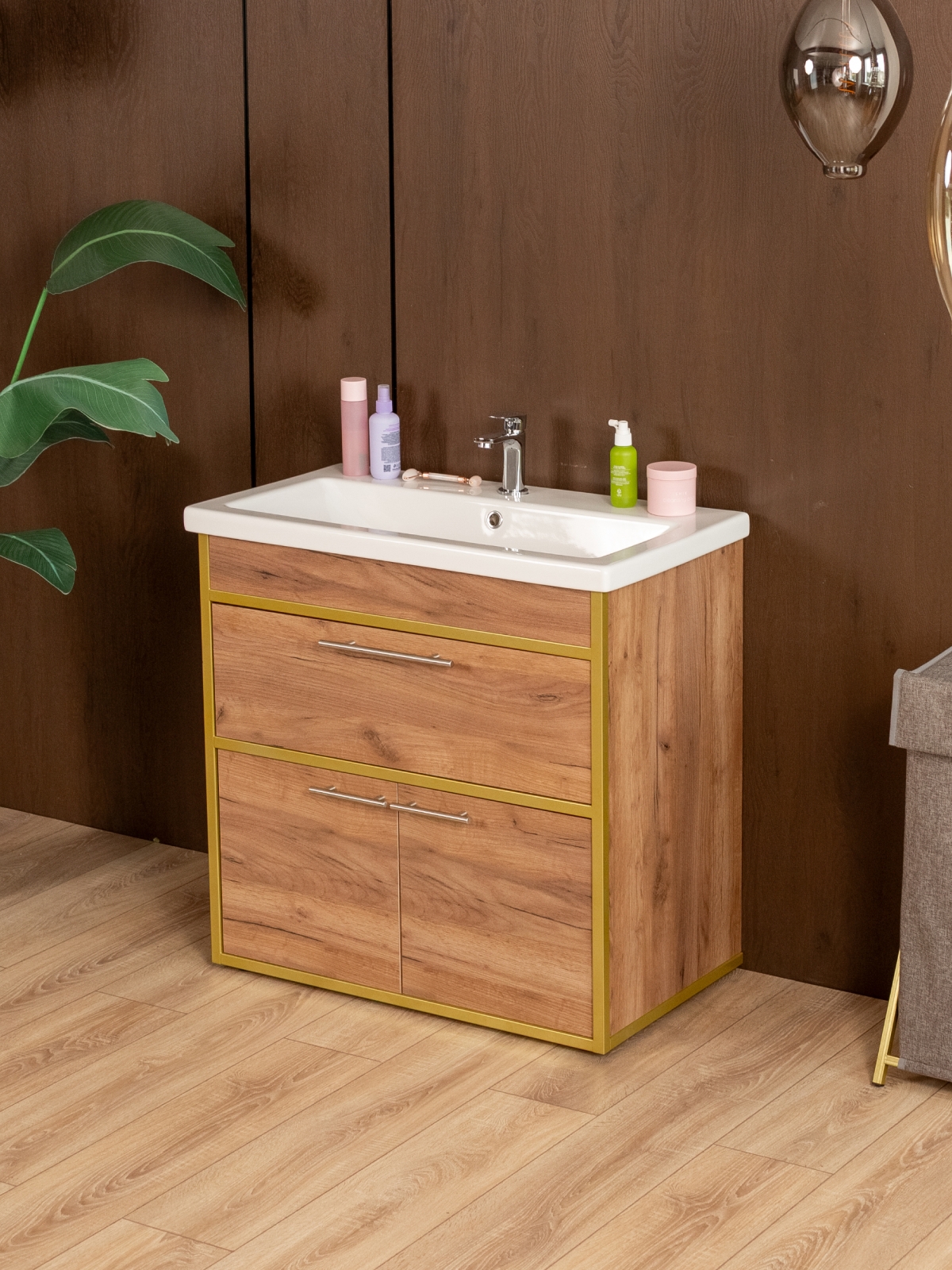 Тумба под раковину для ванной лофт Шимри золотой/амаретто