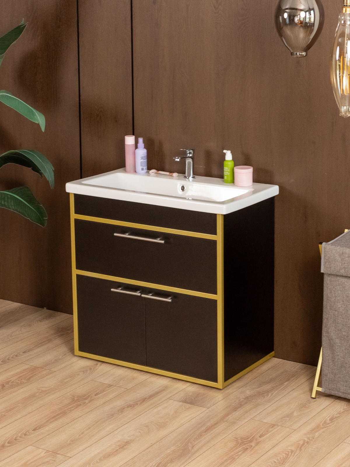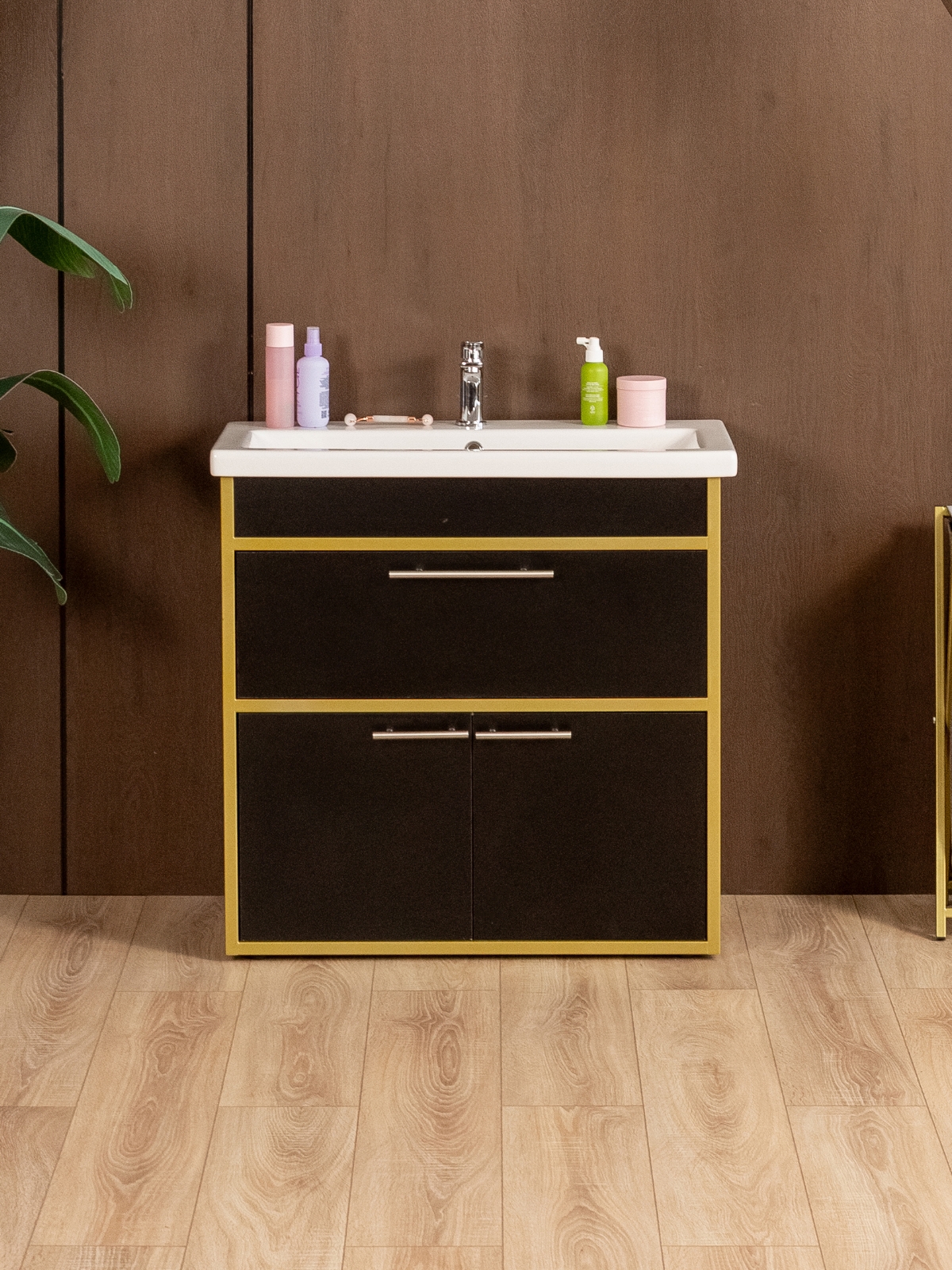 Тумба под раковину для ванной лофт Шимри золотой/черный