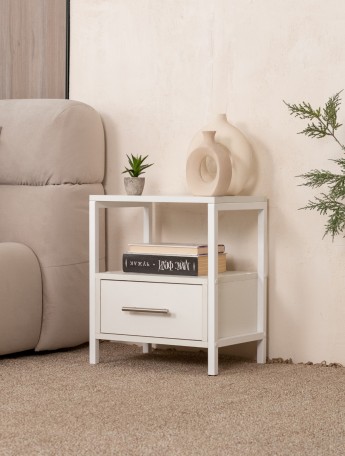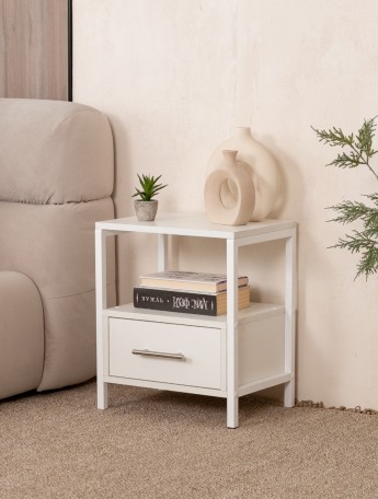 Прикроватная тумба с ящиком и полкой в стиле лофт Томо белый/белый