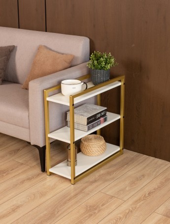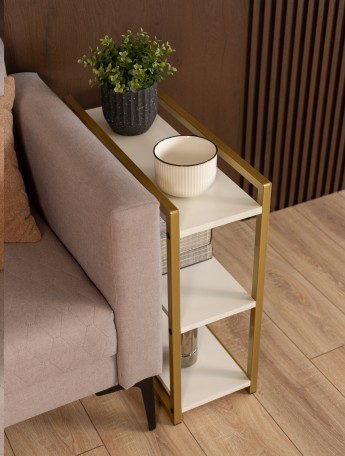 Прикроватная тумба с ящиком и полкой в стиле лофт Томо золотой/белый