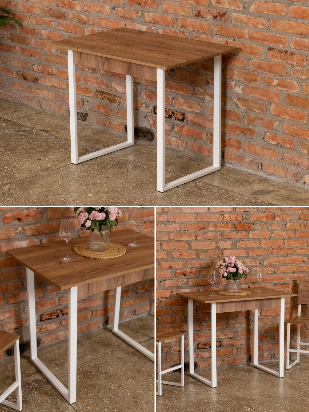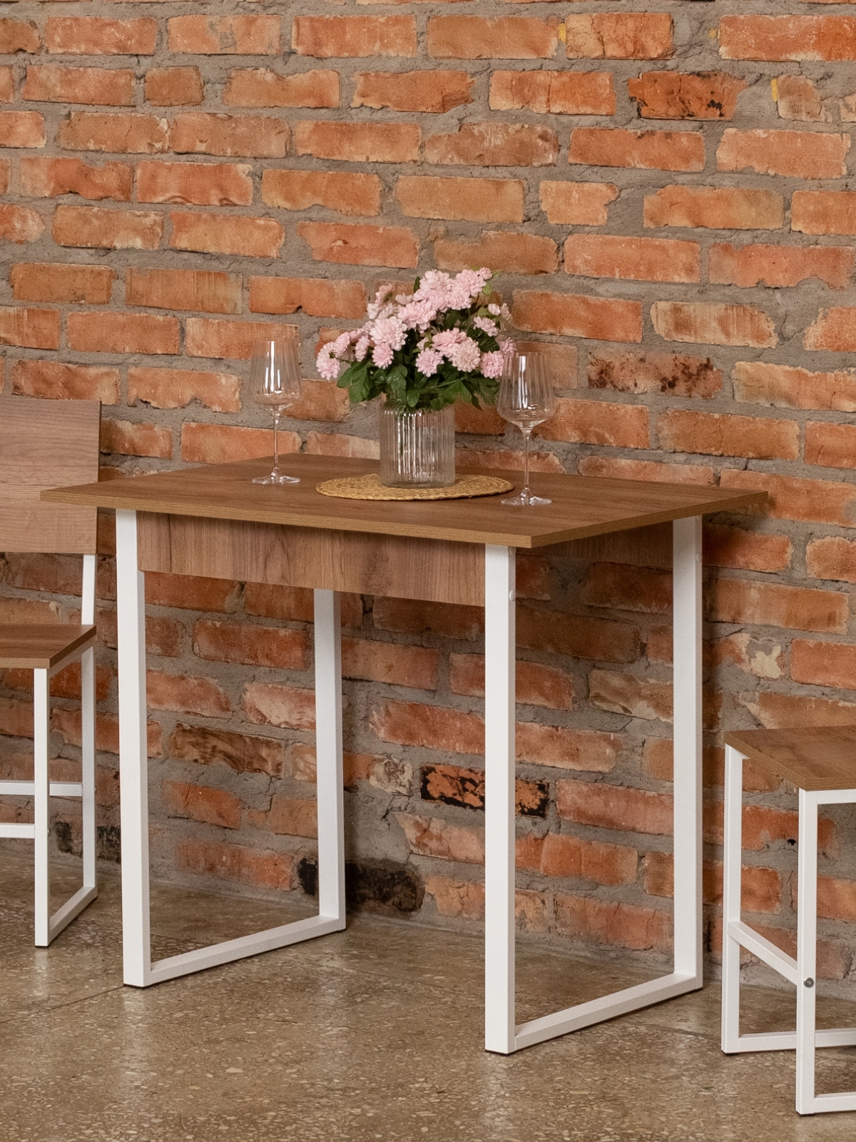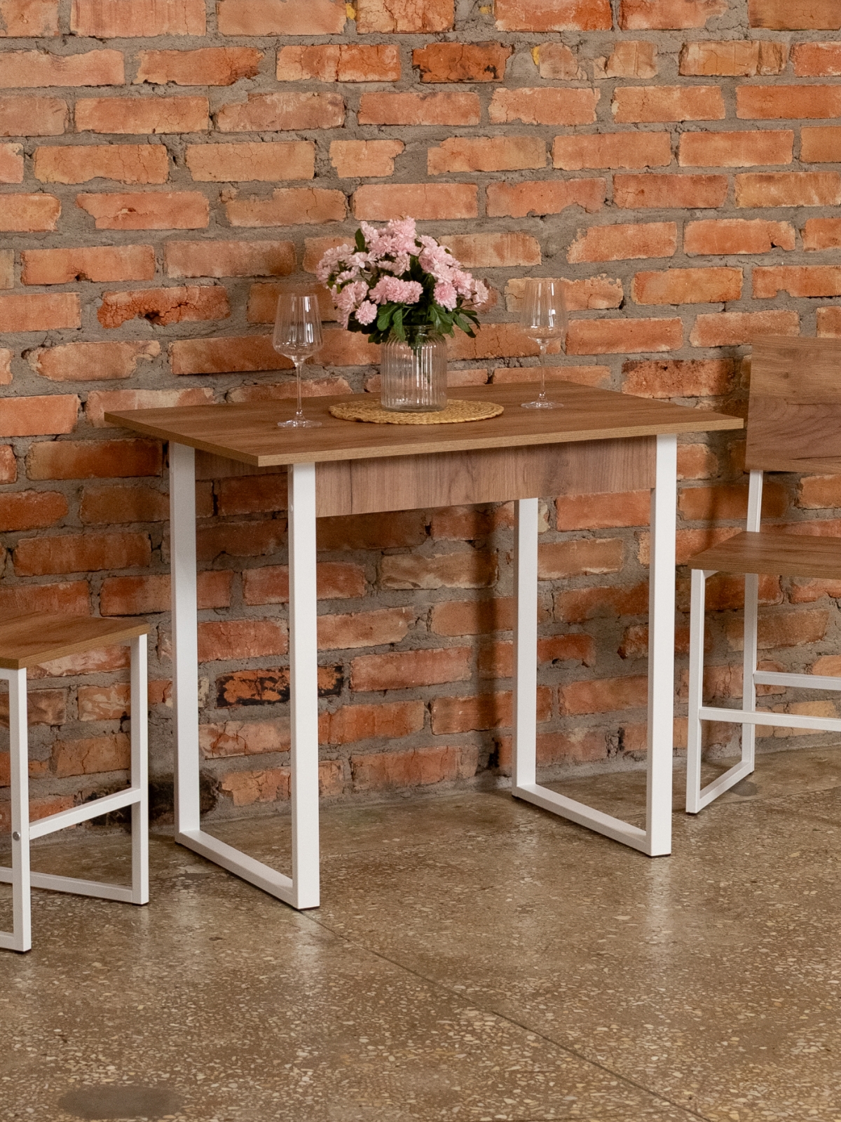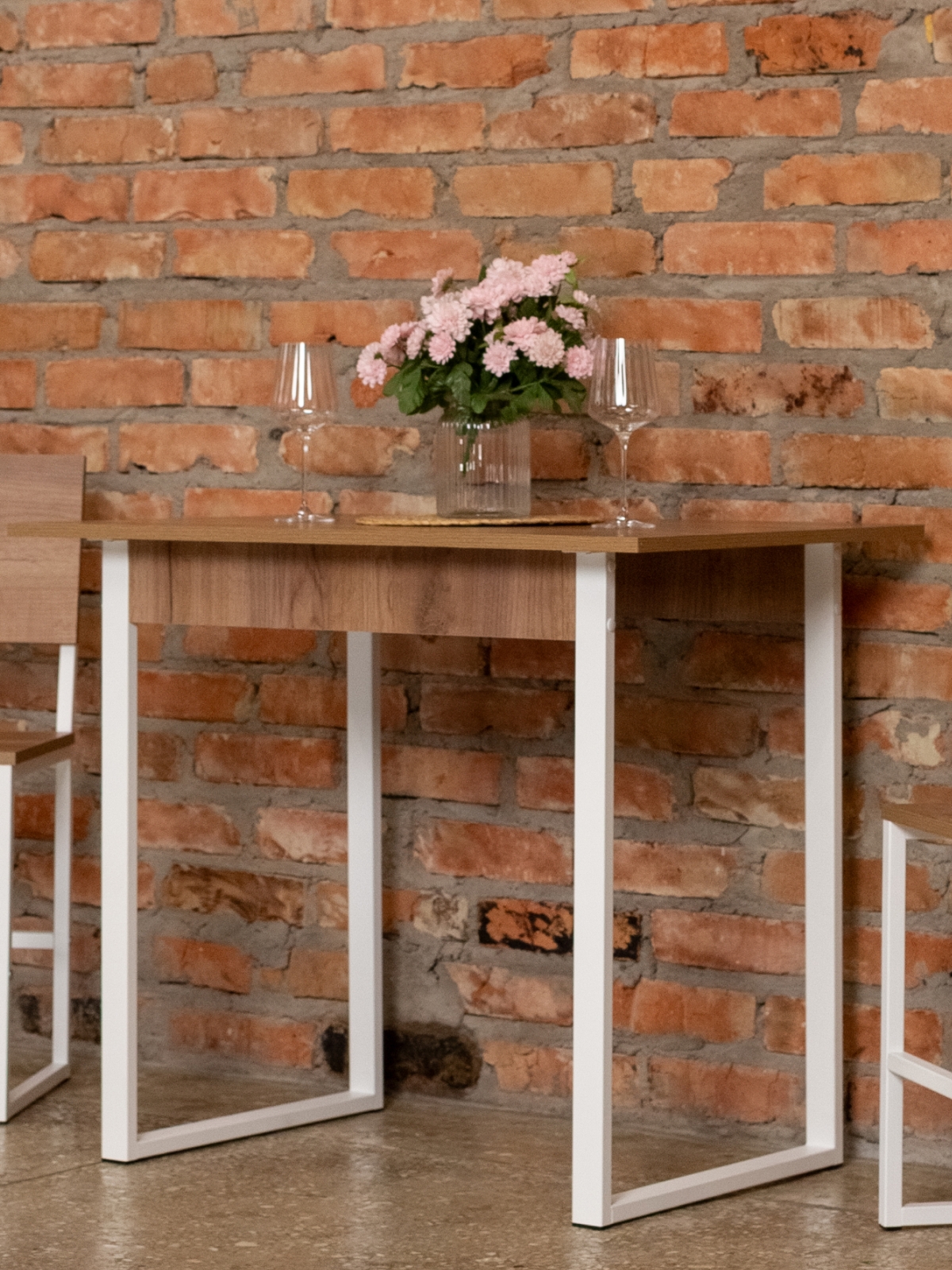 Стол занимает минимум пространства, поэтому его можно разместить в небольшой комнате, где важно сэкономить каждый метр. Универсальная высота рассчитана под стандартный стул, что делает обеденные посиделки максимально комфортными.