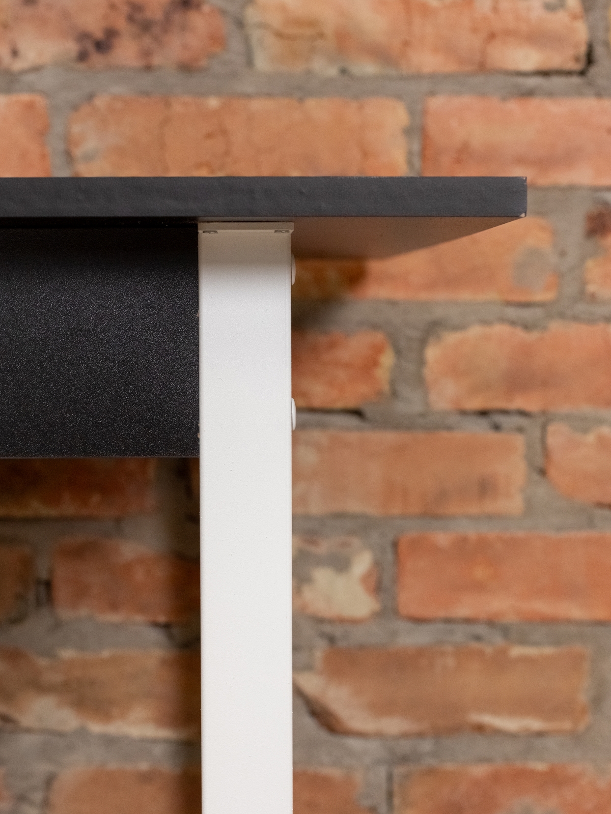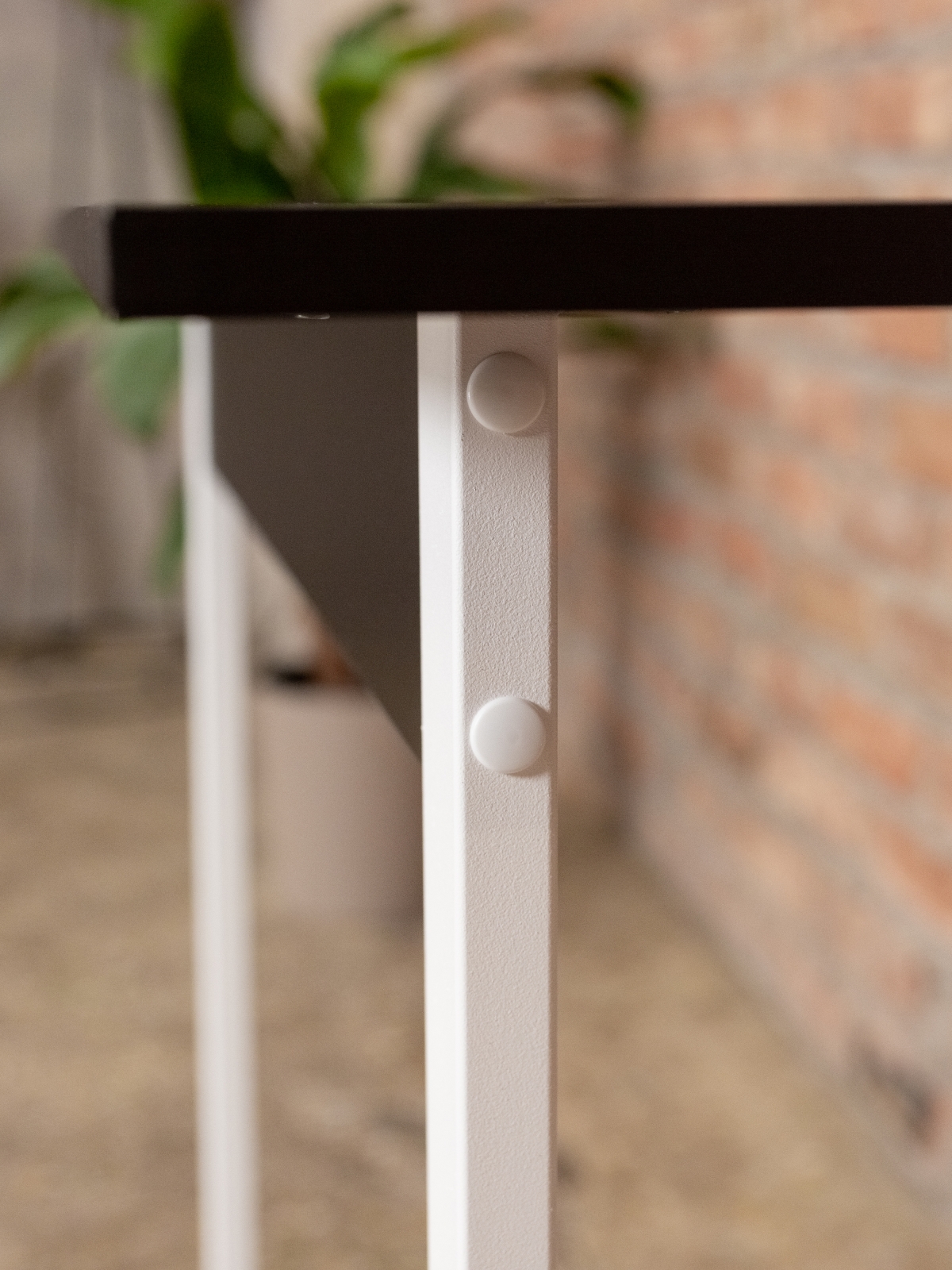 Каркас изготовлен из металла, окрашен порошковым способом в белый цвет, благодаря чему поверхность отличается равномерностью, отсутствием капель и потеков. Металлические опоры обеспечивают устойчивость всей конструкции. Строгая геометрия подчеркивает стиль, а светлое матовое покрытие металла добавляет современности и легкости. Прочные металлические ножки оснащены пластиковыми заглушками для защиты напольного покрытия от царапин.