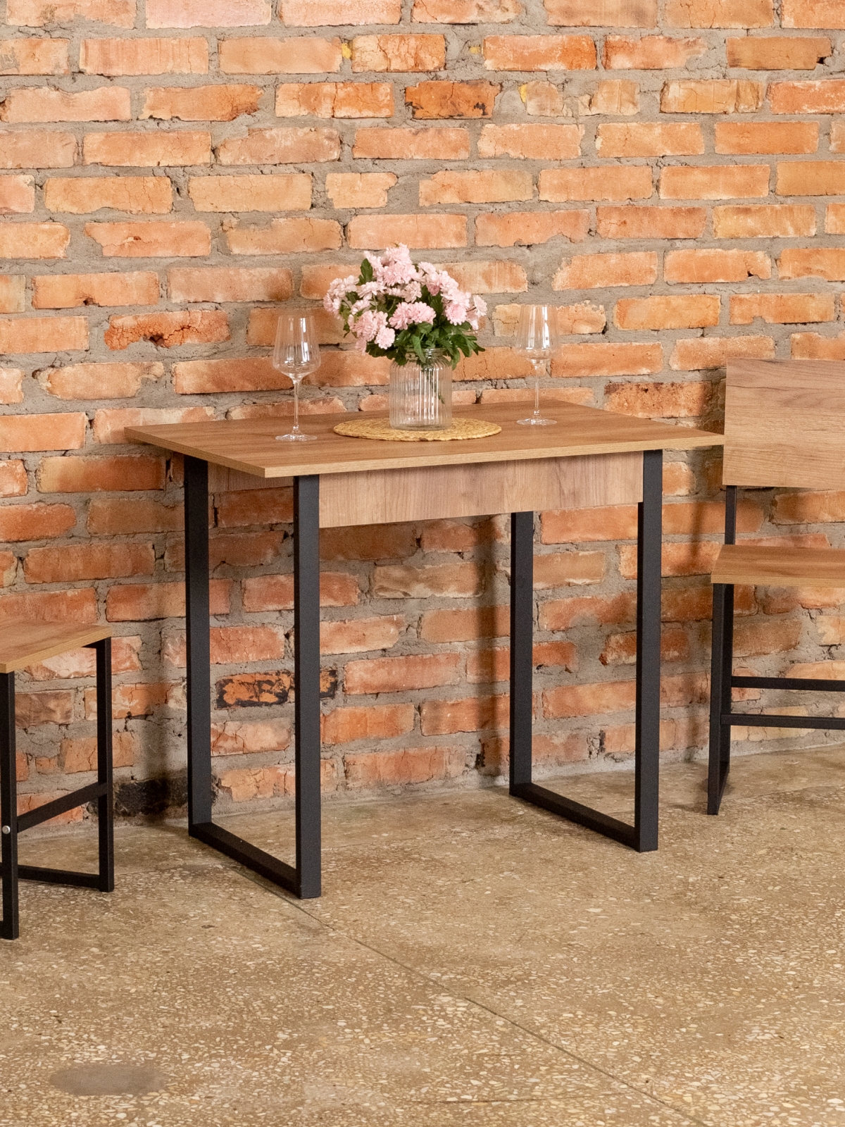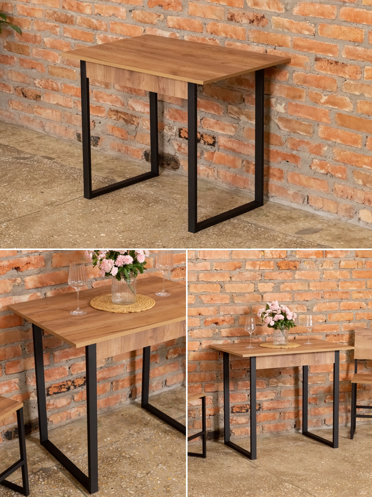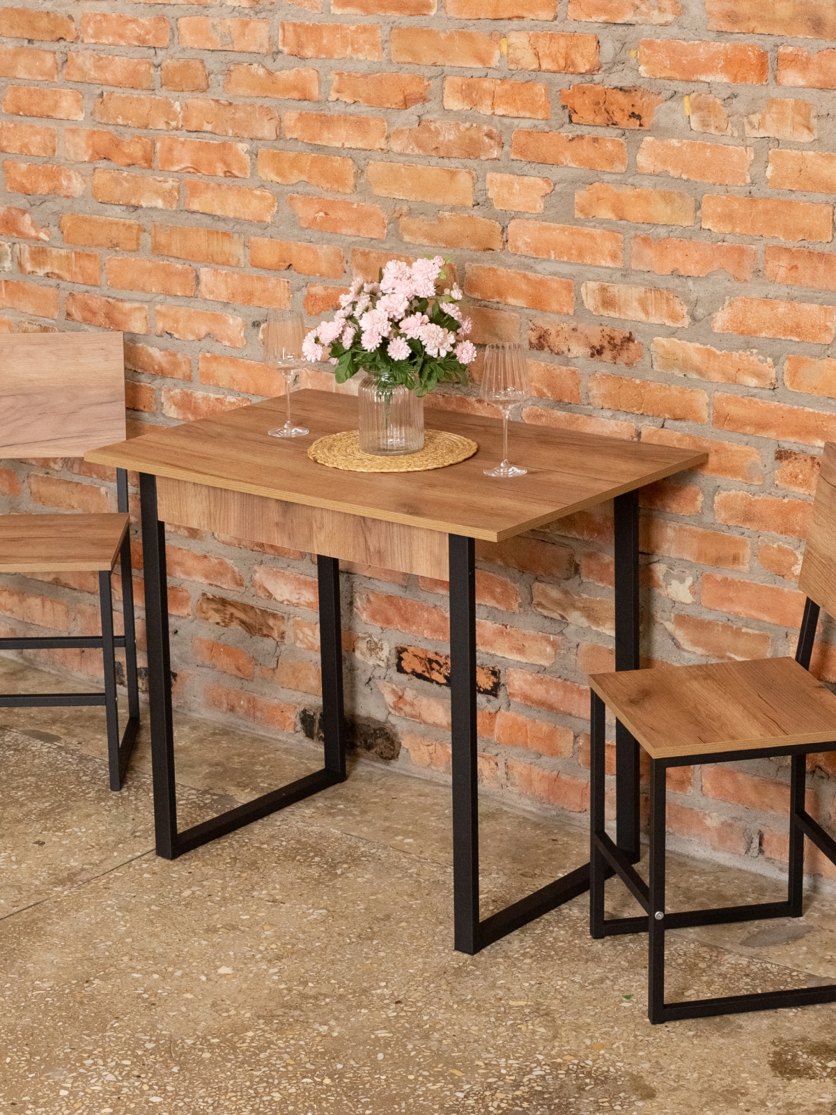 Компактный размер позволяет разместить этот обеденный стол даже в маленькой кухне или гостиной. Он подойдет для 2-4 персон, создавая удобное пространство для обеда, работы или отдыха. Прочный металлический каркас и надежные опоры делают мебель устойчивой даже при ежедневном использовании.