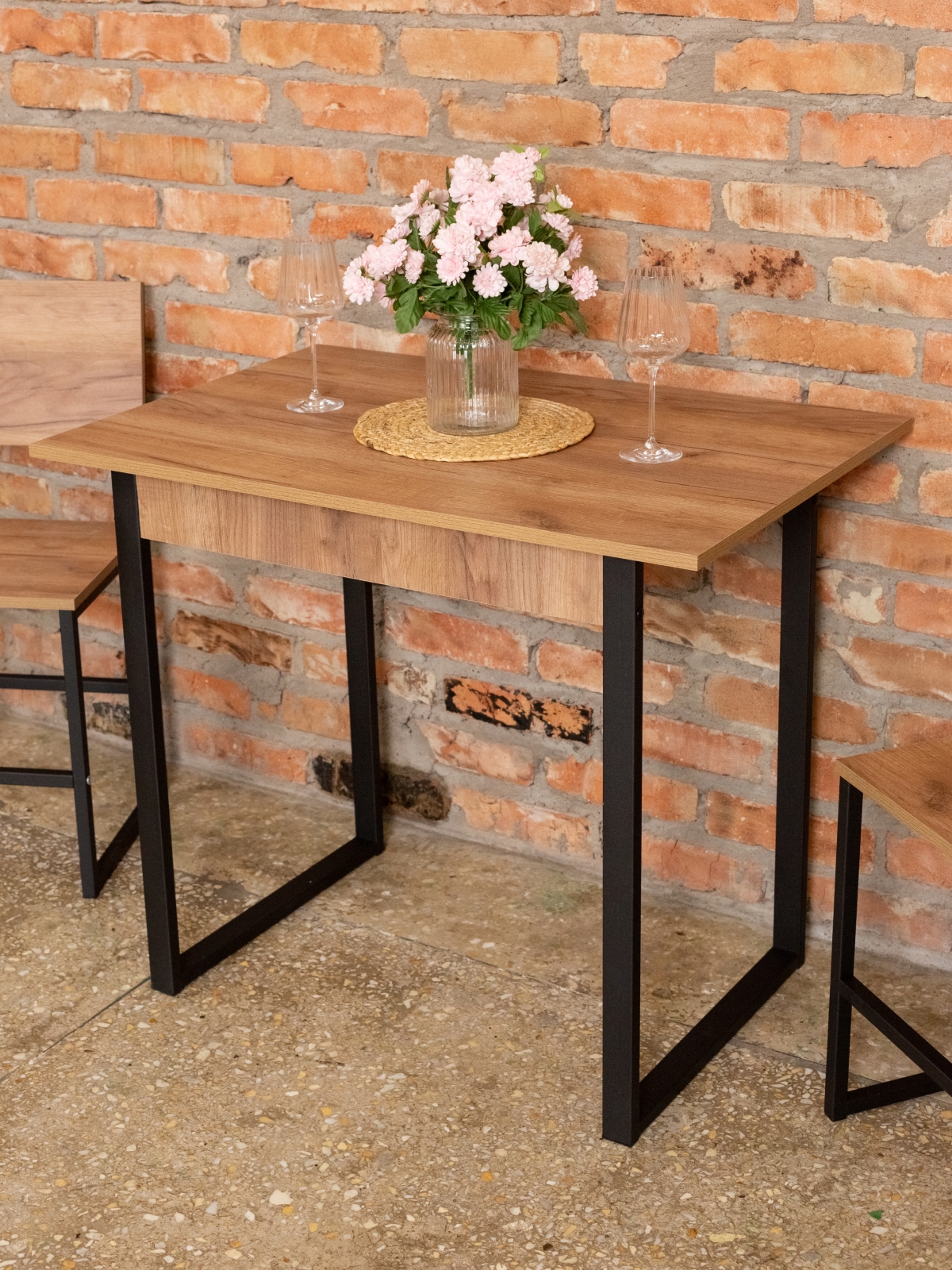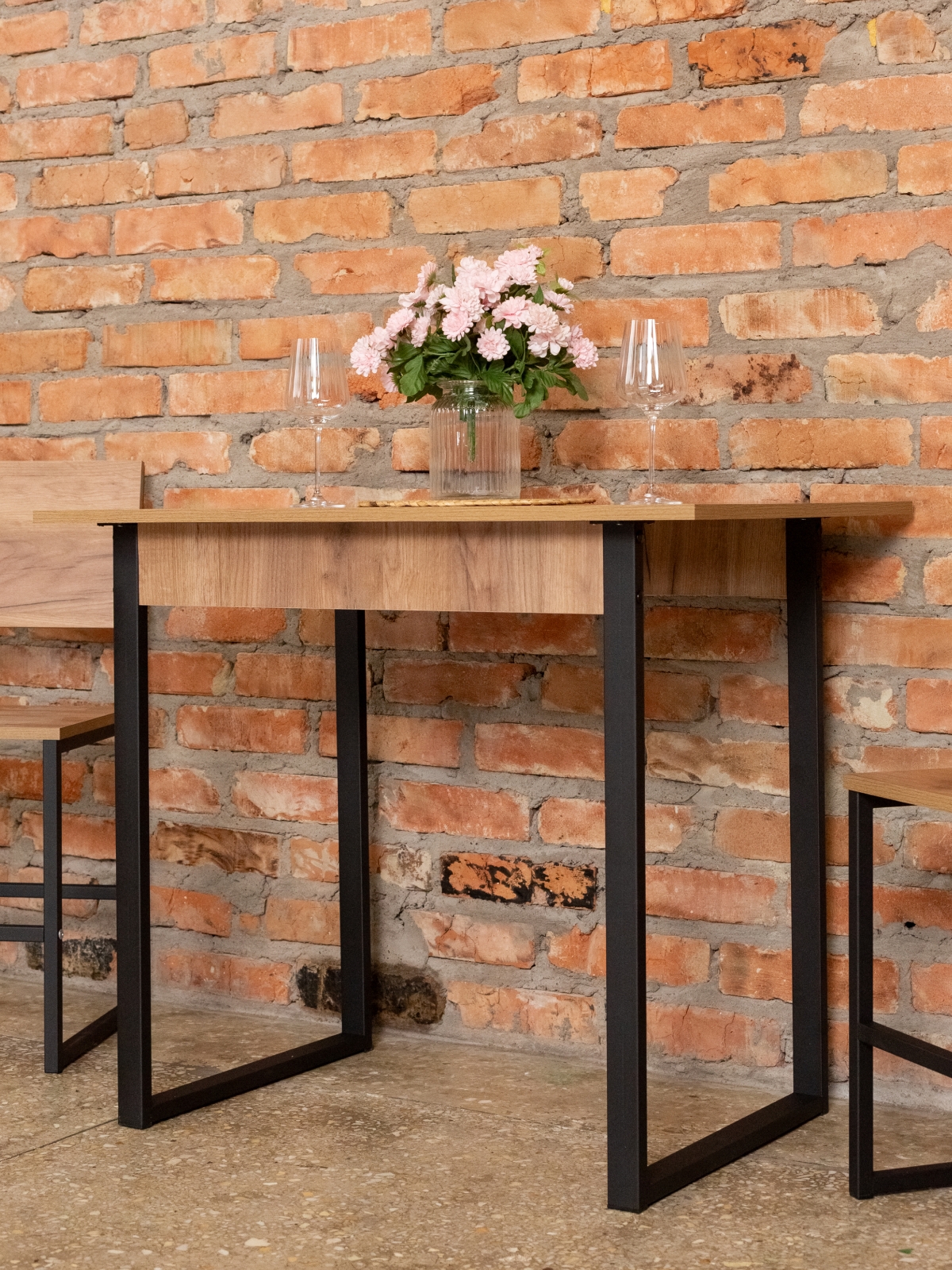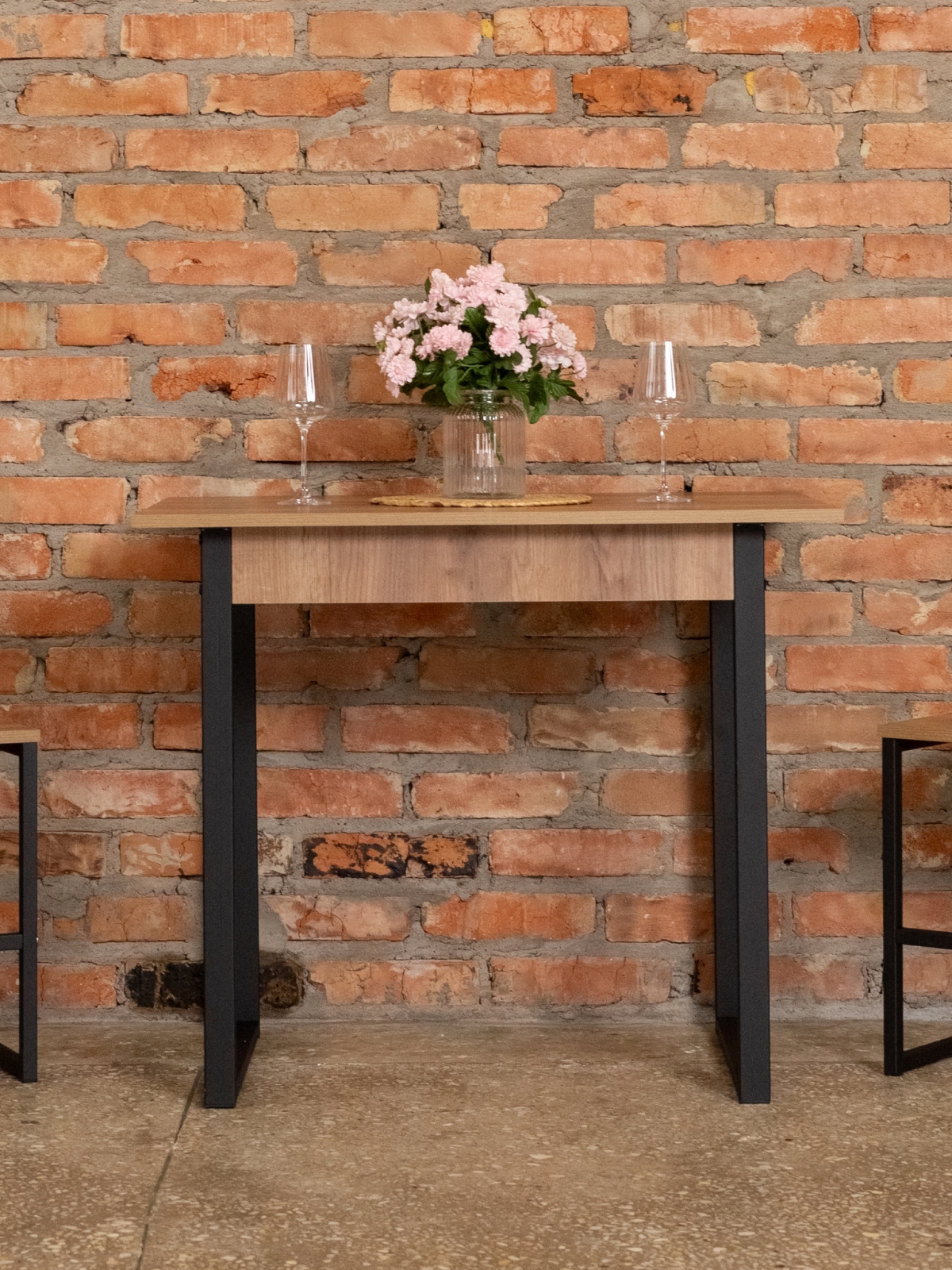 Компактный размер позволяет разместить этот обеденный стол даже в маленькой кухне или гостиной. Он подойдет для 2-4 персон, создавая удобное пространство для обеда, работы или отдыха. Прочный металлический каркас и надежные опоры делают мебель устойчивой даже при ежедневном использовании.