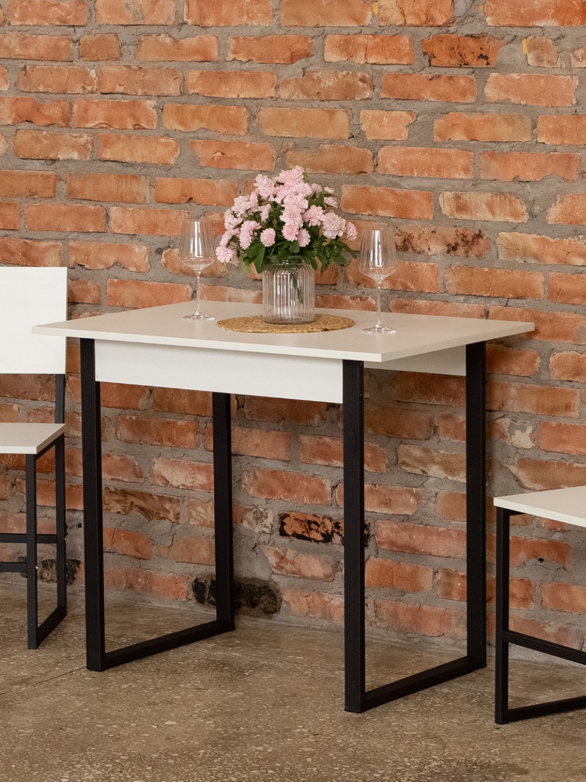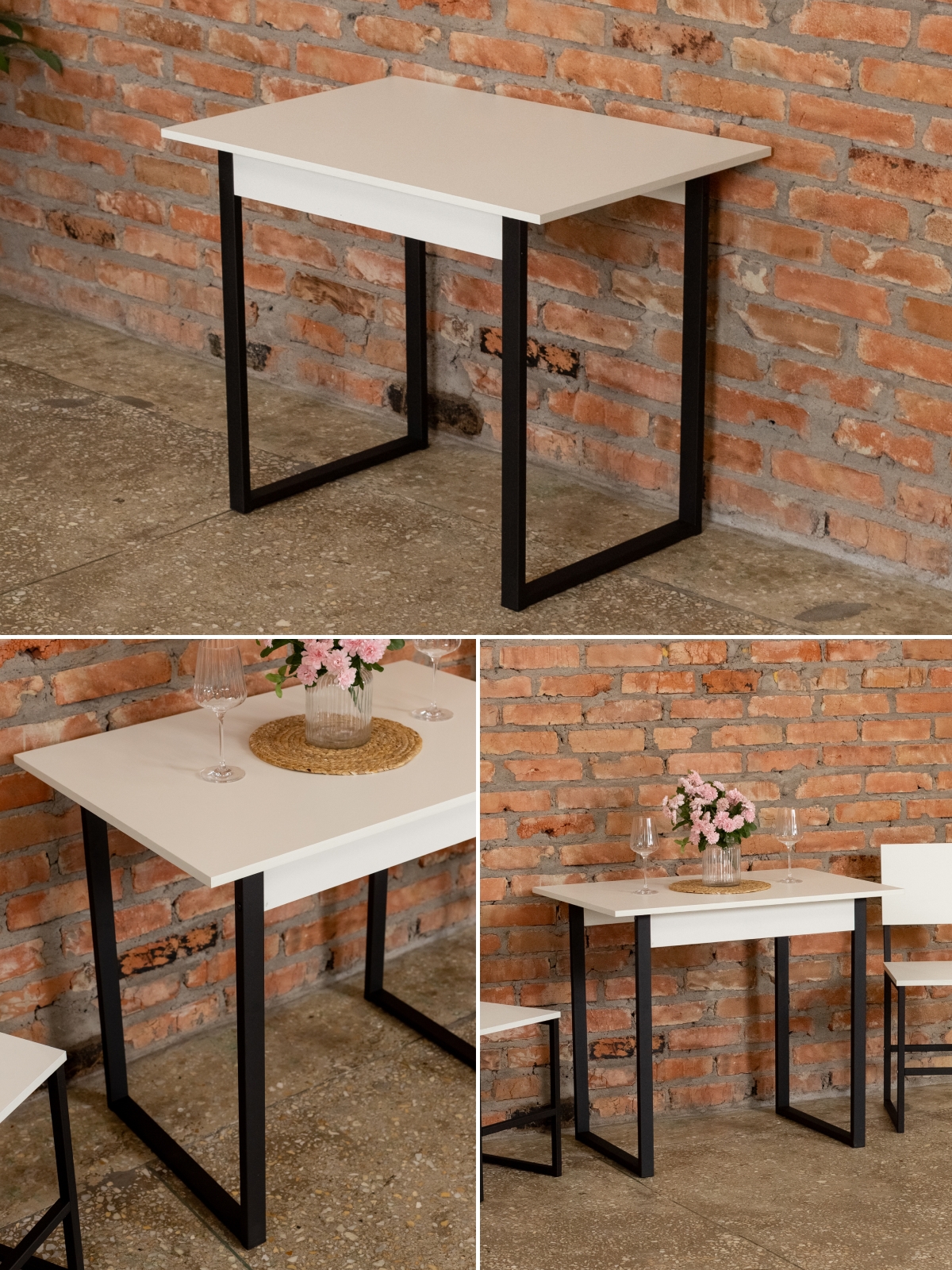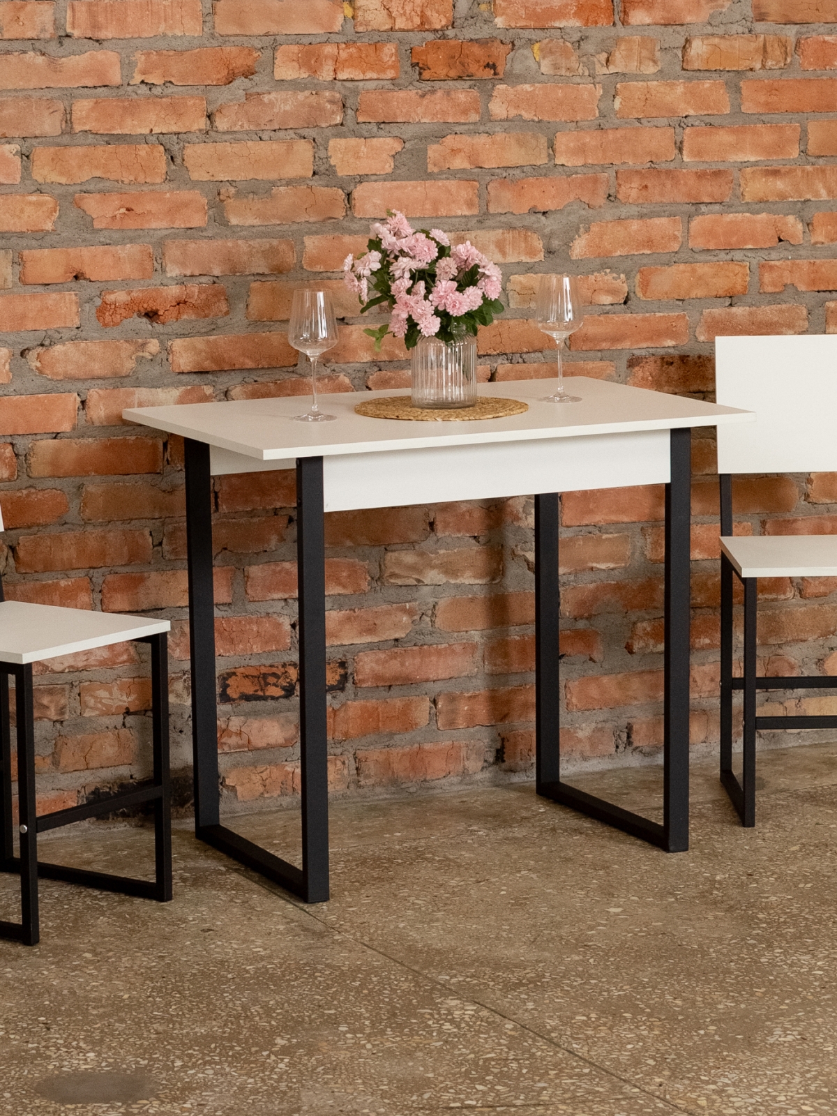 Компактный размер позволяет разместить этот обеденный стол даже в маленькой кухне или гостиной. Он подойдет для 2-4 персон, создавая удобное пространство для обеда, работы или отдыха. Прочный металлический каркас и надежные опоры делают мебель устойчивой даже при ежедневном использовании.