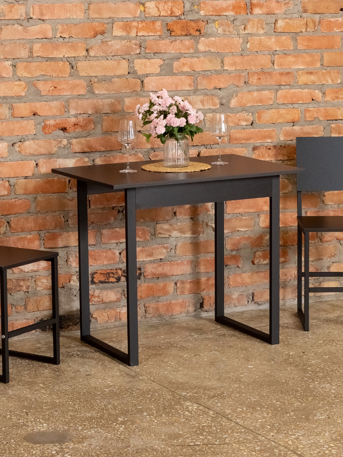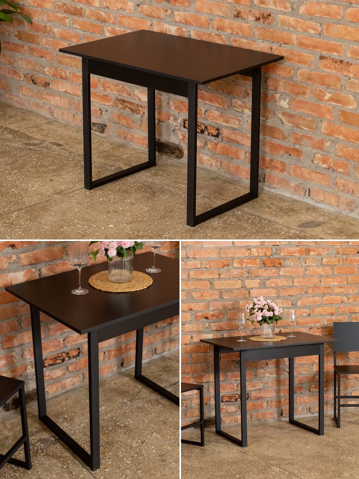 Компактный размер позволяет разместить этот обеденный стол даже в маленькой кухне или гостиной. Он подойдет для 2-4 персон, создавая удобное пространство для обеда, работы или отдыха. Прочный металлический каркас и надежные опоры делают мебель устойчивой даже при ежедневном использовании.