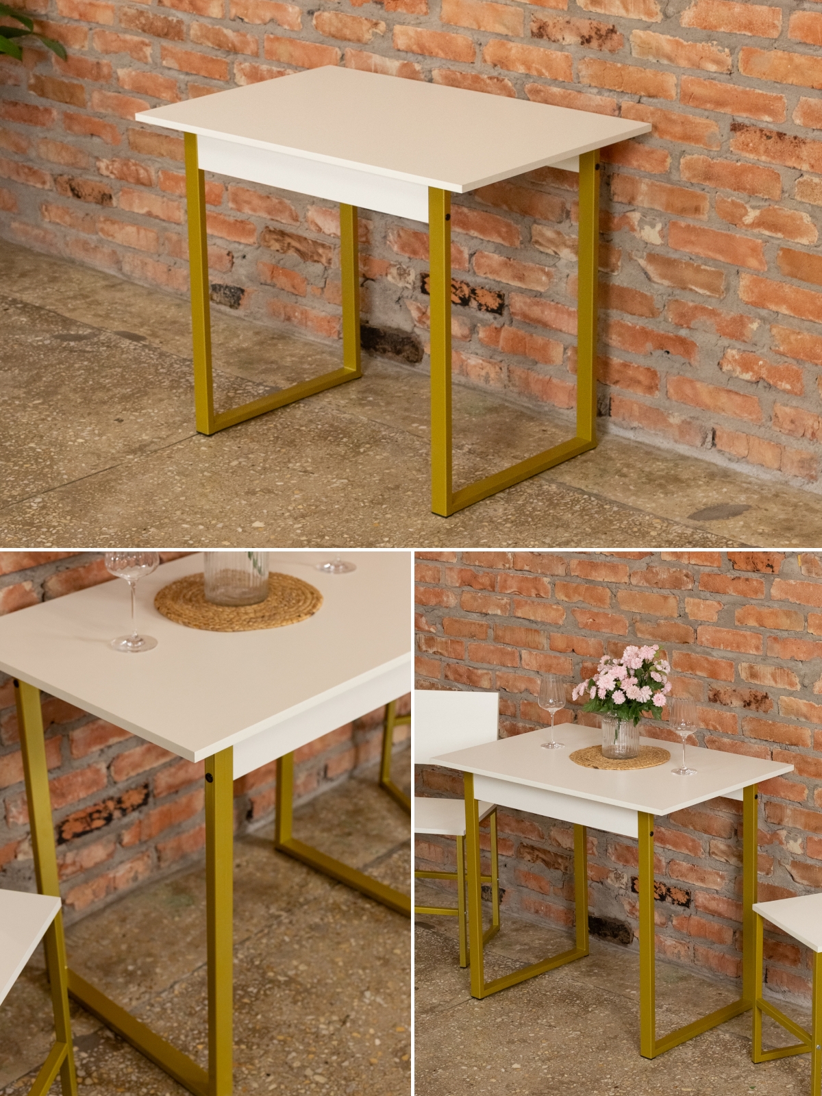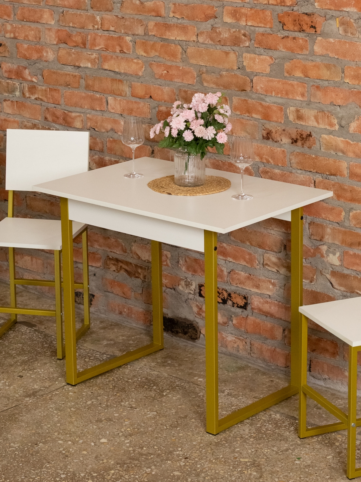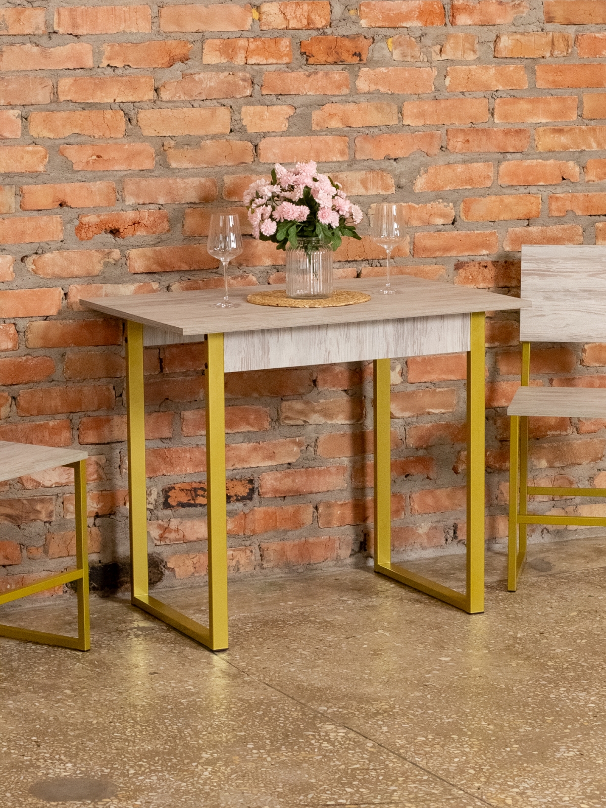 Если вы цените компактный, функциональный и эргономичный подход к оформлению пространства, то стол на металлических ножках станет отличным выбором. Матовые металлические детали в золотом цвете добавляют интерьеру изысканность и блеск, а лаконичный дизайн позволяет столу гармонировать практически с любыми элементами декорами.