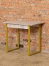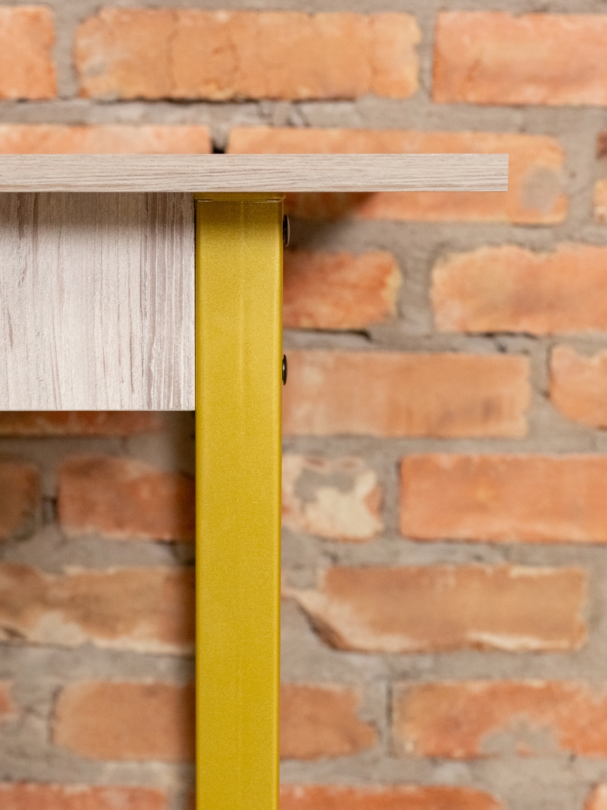 Металлические опоры окрашены в золотой цвет по технологии порошковой окраски. Это обеспечивает металлическим деталям равномерный оттенок без капель и потеков, а также защищает от повреждений. Прочные металлические опоры обеспечивают устойчивость и долговечность, а четкая геометрия подчеркивает современный стиль. Золотой металл в сочетании с яркими элементами делает стол нетривиальным акцентом в любой комнате. Каркас устойчивый, ровный, без перекосов, что гарантирует комфортную эксплуатацию дома, в квартире, кафе или ресторане.