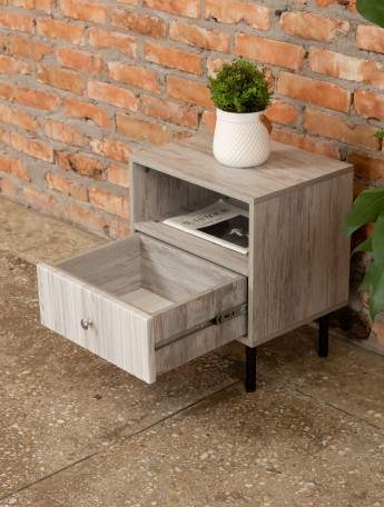 Прикроватная тумба с ящиком и полкой в стиле лофт Томо белый/кашемир