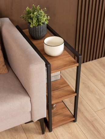 Прикроватная тумба с ящиком и полкой в стиле лофт Томо черный/амаретто